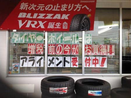 タイヤ館白河では、その増税前にタイヤやホイールを買ってしまおうと