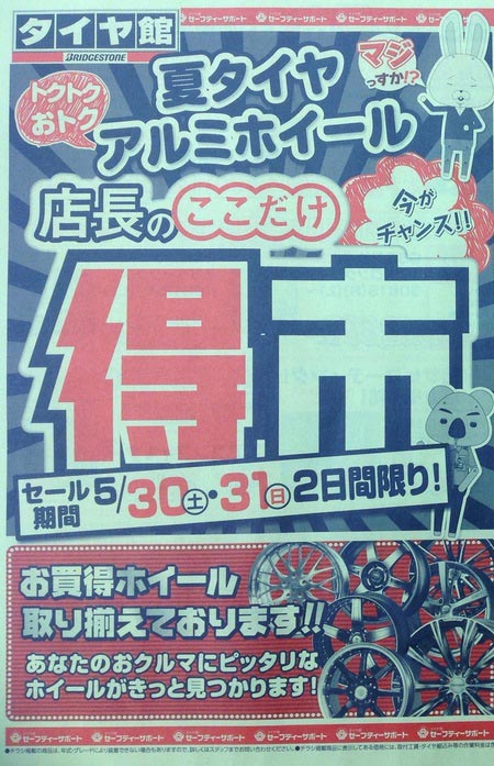 明日からの2日間(5/30,31)夏タイヤ、アルミホイール