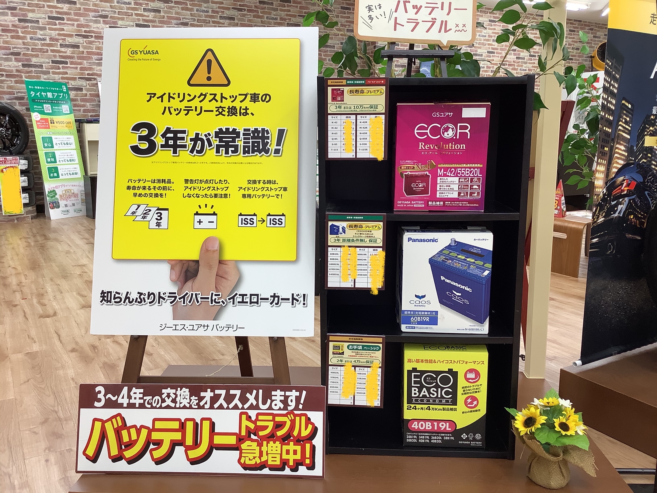 バッテリーのトラブルで来店するお客様がちらほらと。