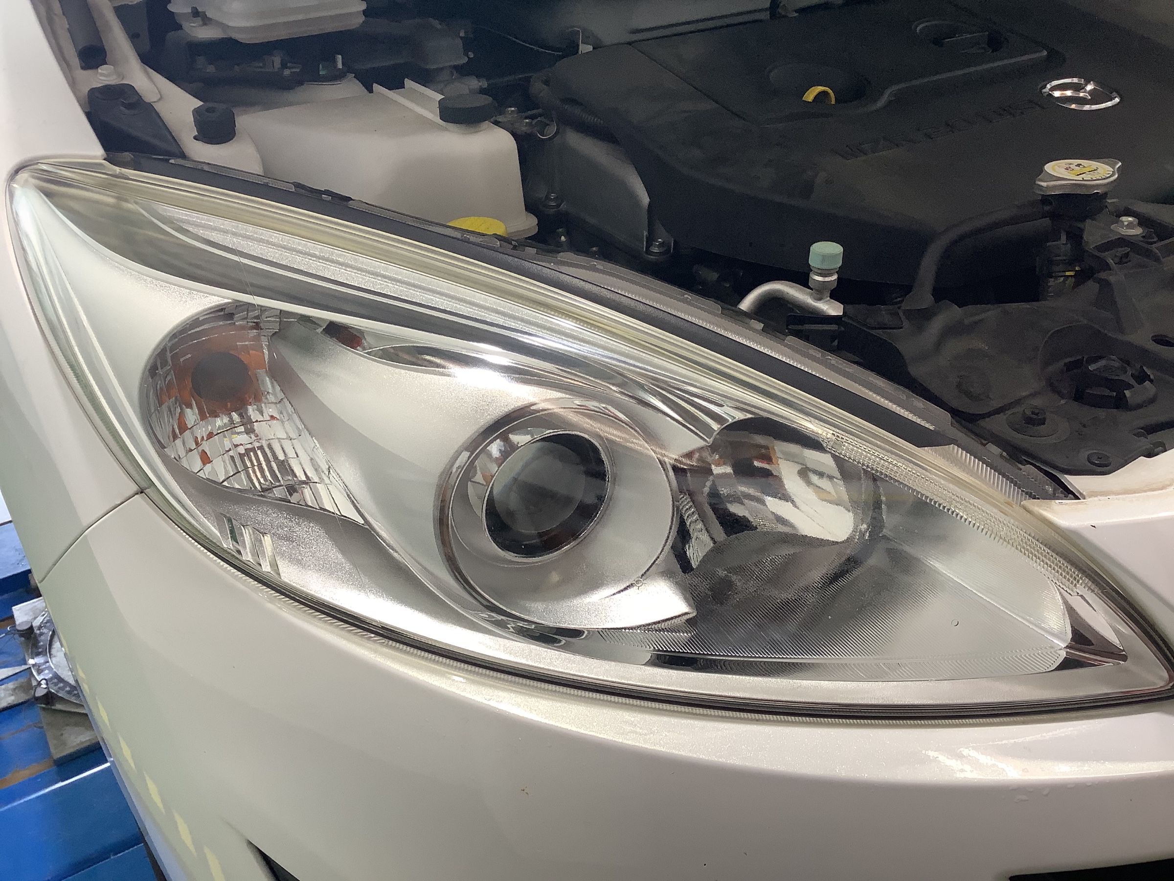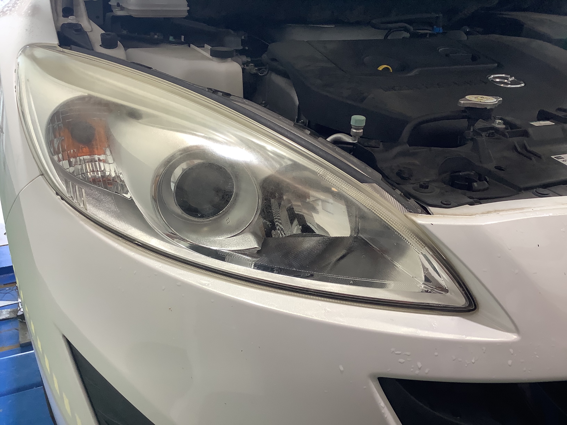 今回マツダ プレマシー のヘッドライトコーティング作業をやらせていただきました。