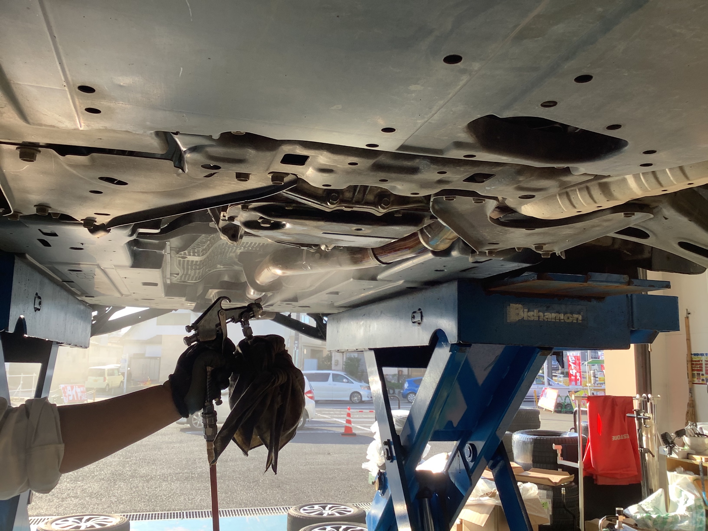 エアブラシで透明な薬剤をお車の下回り&足回りに隈なく散布していきます!