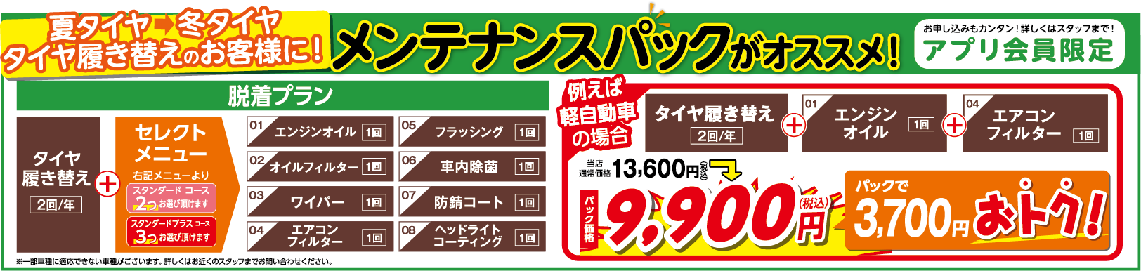 タイヤ交換 メンテナンス メンテナンスパック お得 【タイヤ館白河】