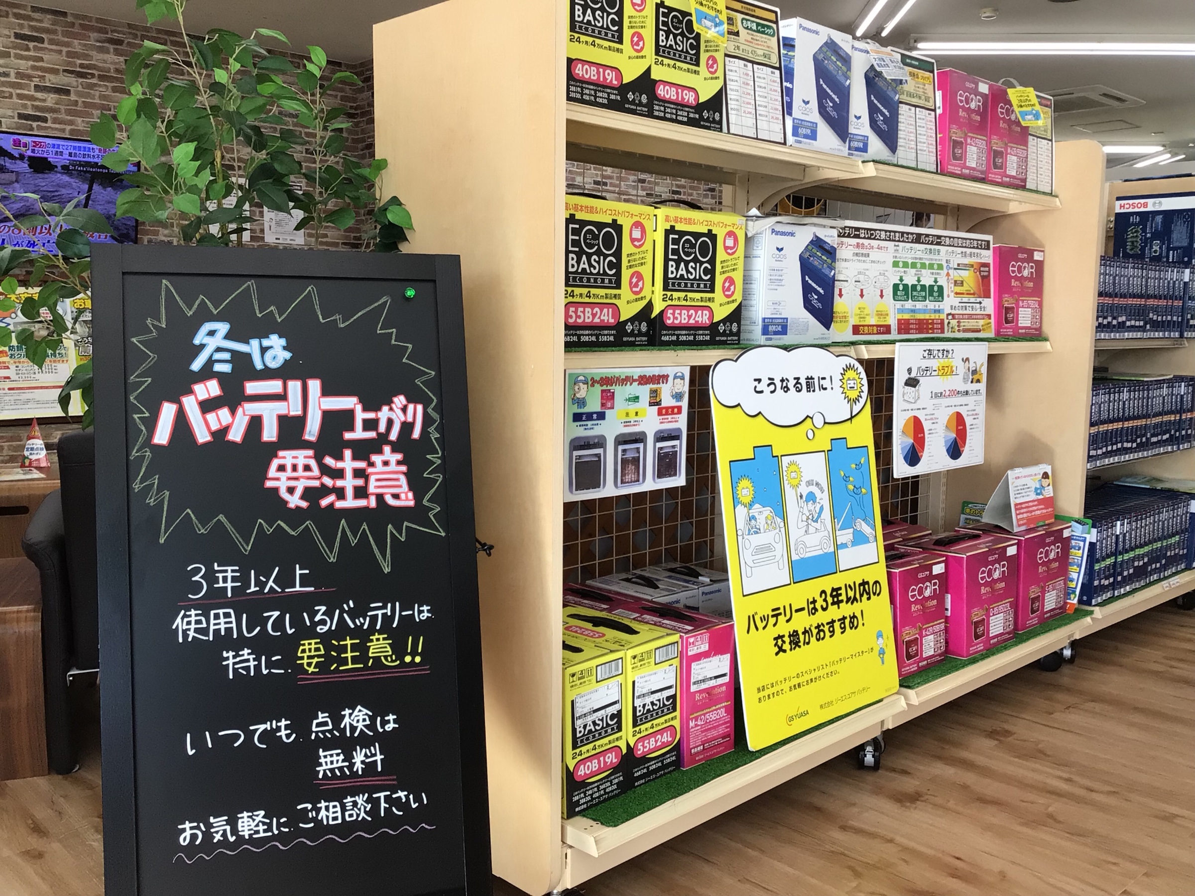 タイヤ館白河では、様々な車種に対応できるようバッテリーをご用意しております!