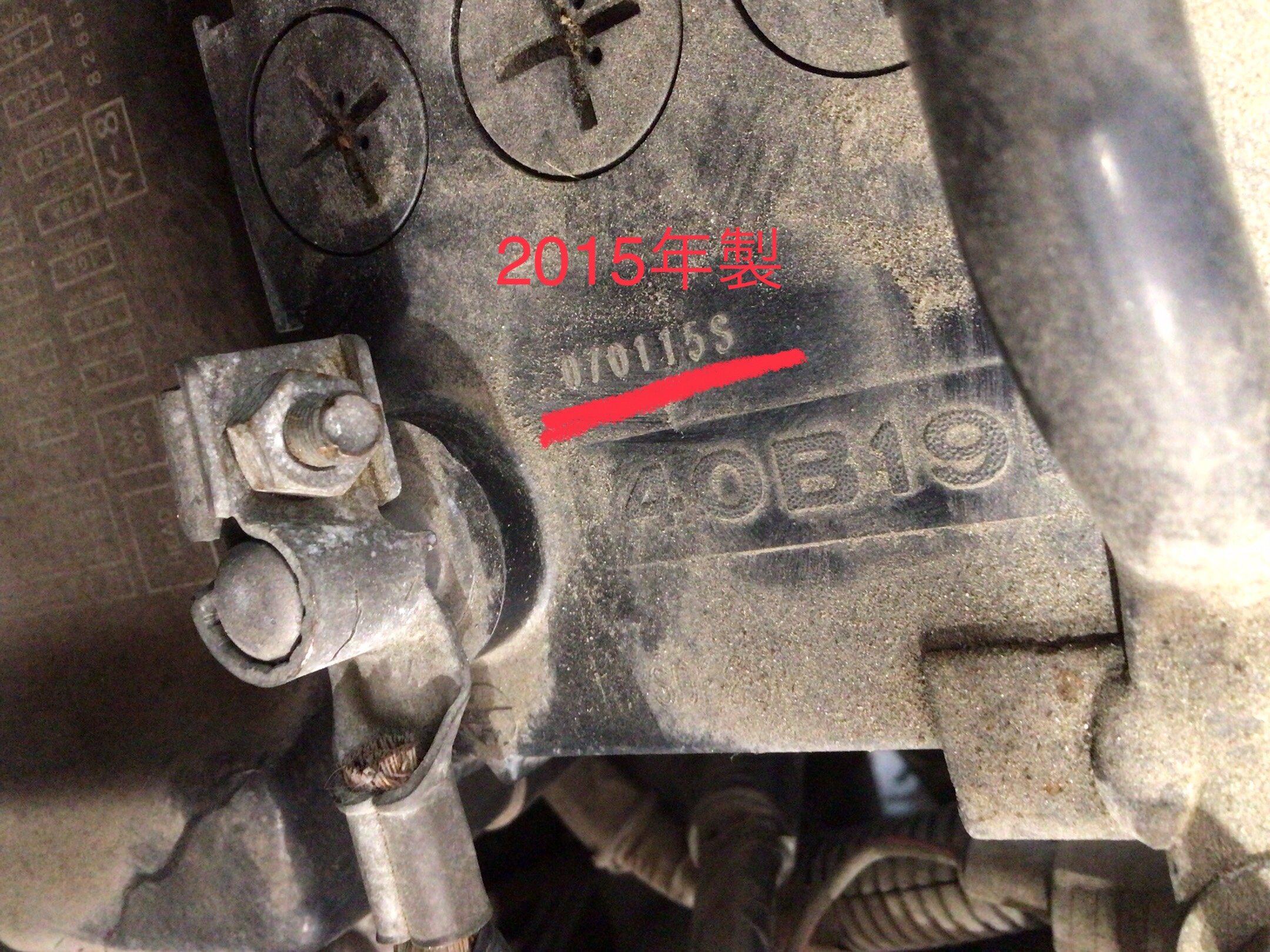 早速お車を入庫しバッテリーを確認してみると2015年製のバッテリーが、