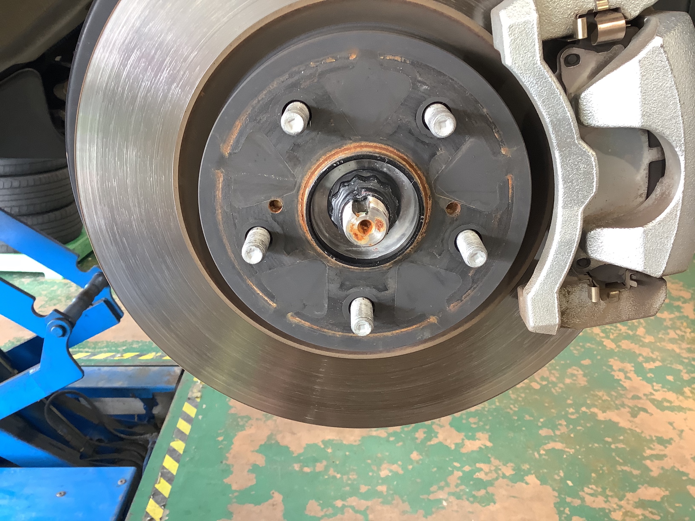こちらの写真、1年点検を迎えたばかりの新しいお車ですがタイヤを外してみると