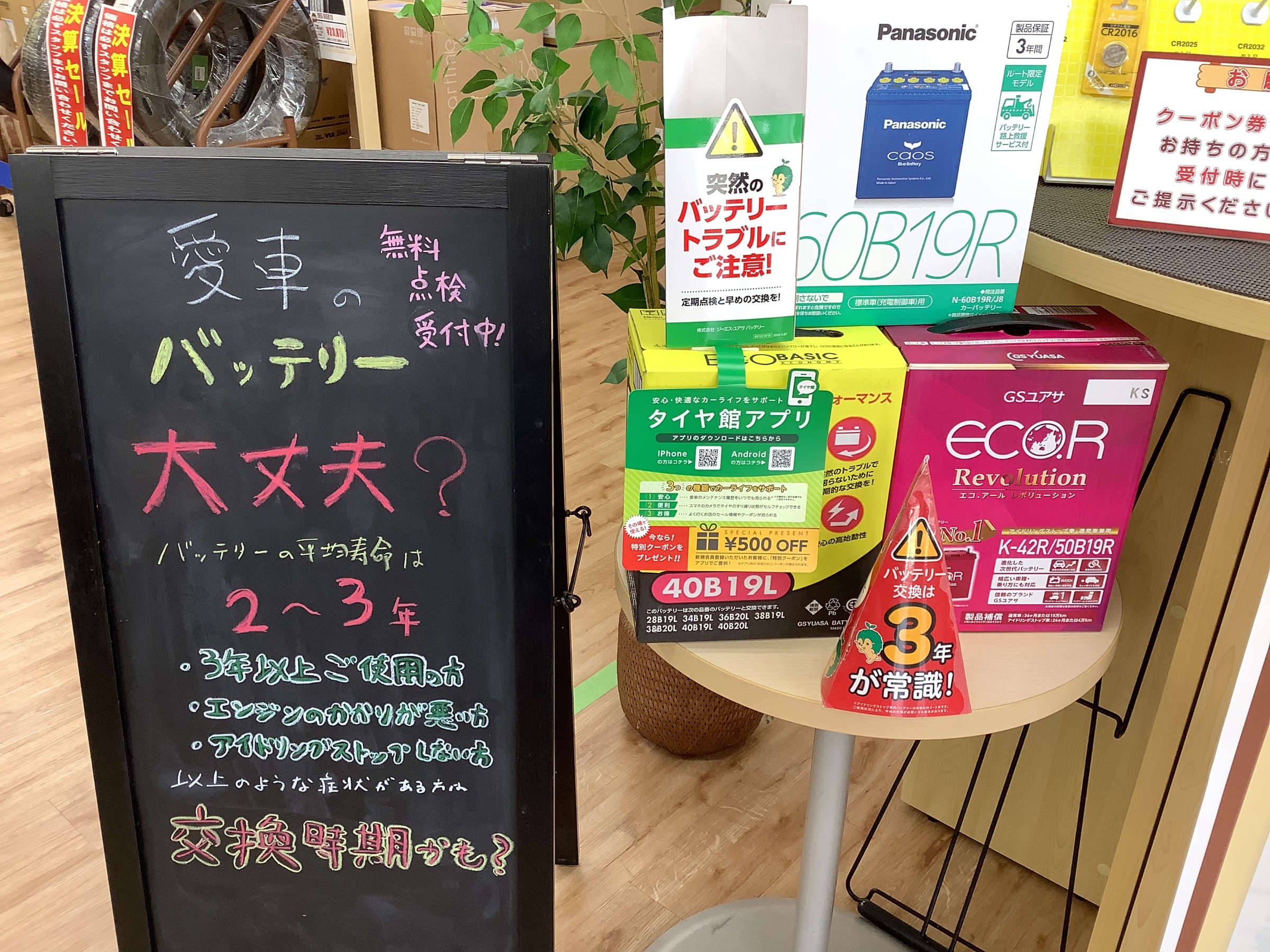 【タイヤ館 白河】タイヤ点検、バッテリー点検無料でやってます!!