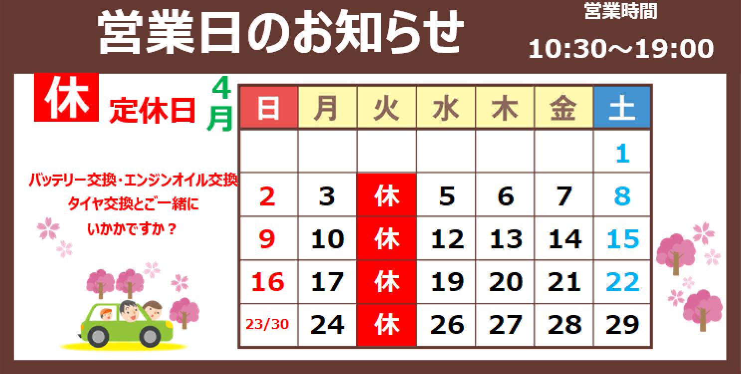 4月4日(火曜日)は定休日となります。