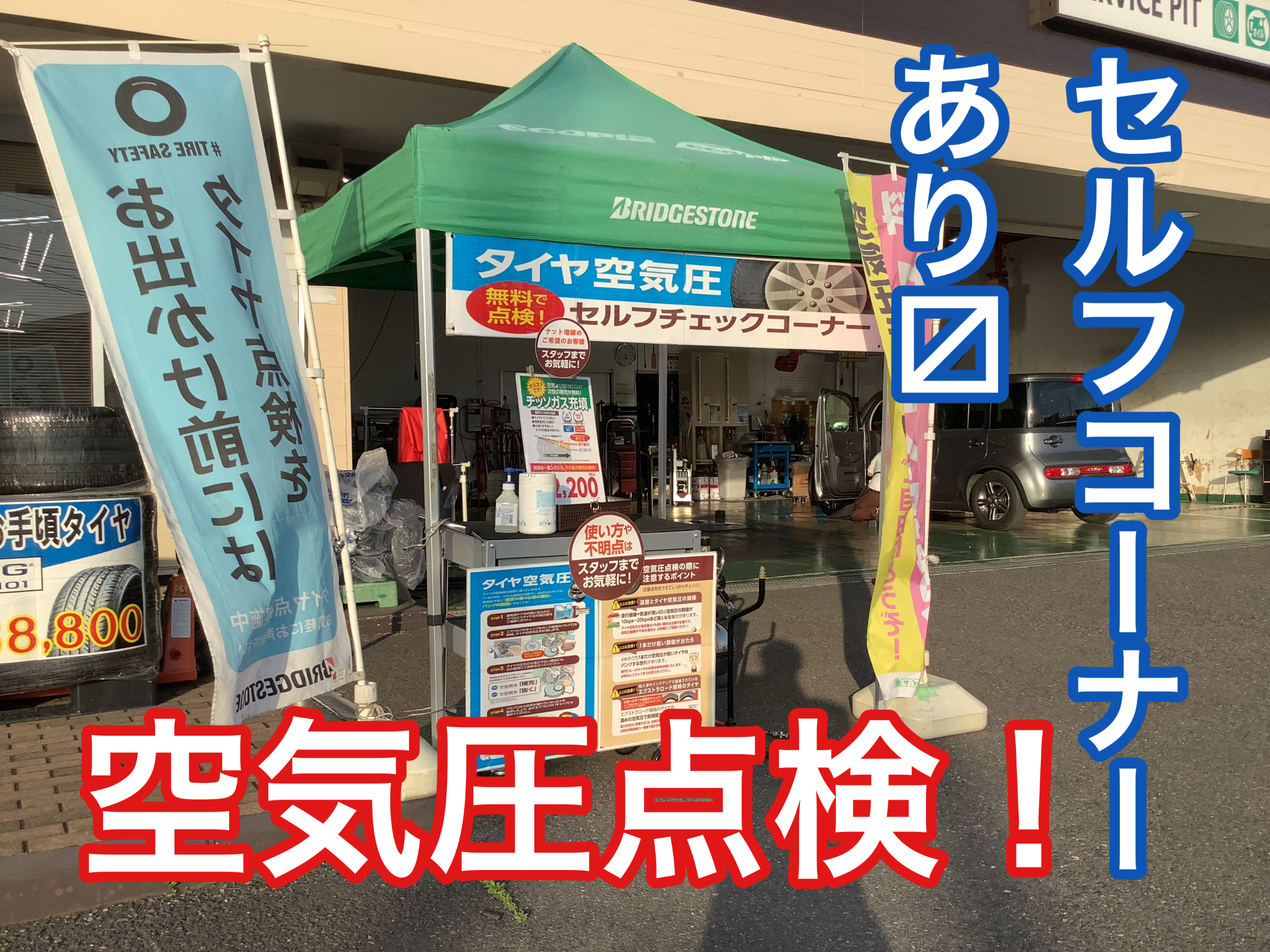 【タイヤ館白河】お手軽に空気圧点検!セルフチェックコーナーあり〼 ポスト 2023年5月4日 タイヤ館白河では、どなたでもお気軽にご利用いただけるセルフチェックコーナーを設置中です! 是非お出かけ前にタイヤ館で空気圧点検を! ご不明な点等ございましたらお気軽にスタッフまでご相談ください♪ タイヤ館 白河 住所:961-0985福島県白河市和尚壇6-17 相談予約 タイヤ点検・安全点検/タイヤ履き替え/オイル交換/その他ピット作業の予約