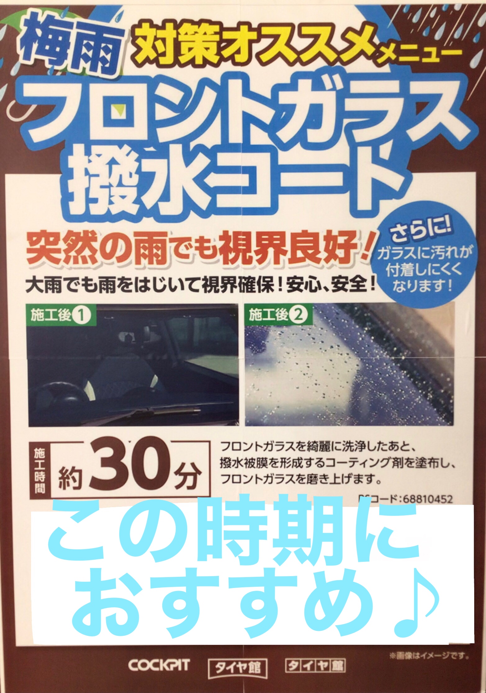 明日から週末。 ポスト 2023年6月9日 こんにちは。 生憎の空模様ですが、土日は晴れたらイイですねー♪ お出かけ前には点検を。 点検は無料ですのでお気軽にお越しくださいね♪ そして、いよいよ雨の多くなる季節が来ます。 そこで店長おすすめのサービスを一つ。 視界不良はイライラと事故の元。 一度試して見ませんか? ご予約お待ちしております♪ タイヤ館 白河 相談予約 タイヤ点検・安全点検/タイヤ履き替え/オイル交換/その他ピット作業の予約