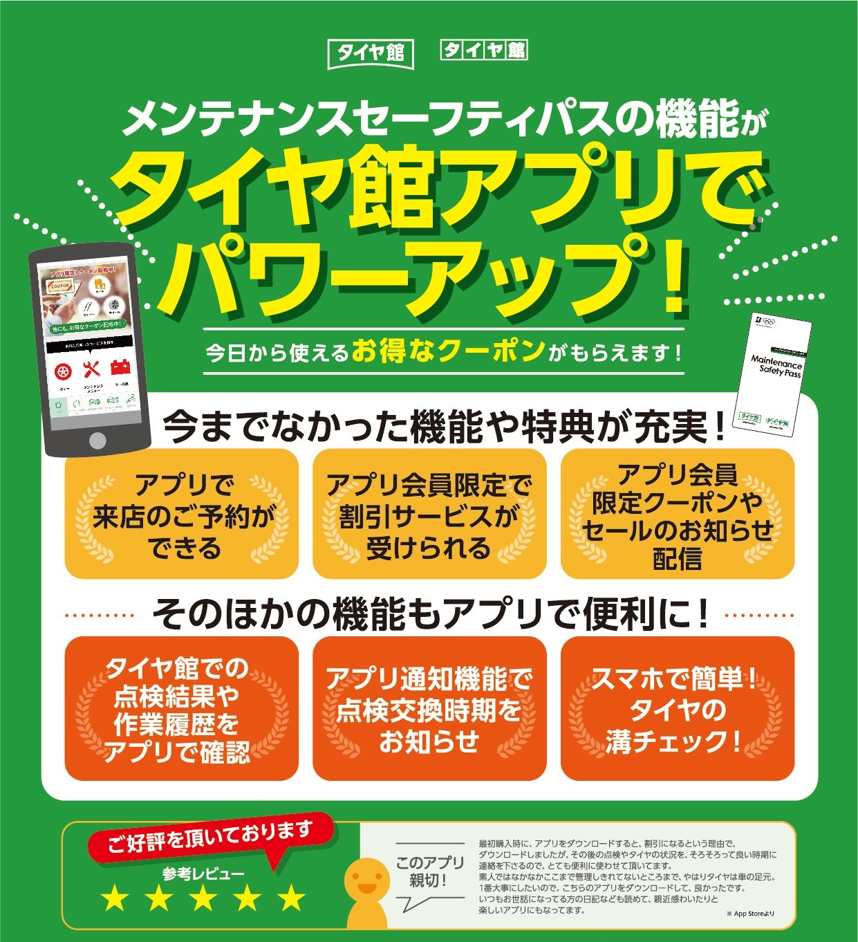 【タイヤ館 白河】タイヤ館アプリでお得に クーポン 便利 ポスト 2023年7月5日 こんにちわ! 今回は、こちらをご紹介!! 『 タイヤ館アプリ 』 タイヤ館のアプリご存じですか? 初回登録で、500円OFFのクーポンも、もらえます!! ぜひ、ご登録してみてください☆ タイヤ館 白河 住所:961-0985福島県白河市和尚壇6-17 電話番号: 0248-23-6060 相談予約 タイヤ点検・安全点検/タイヤ履き替え/オイル交換/その他ピット作業の予約