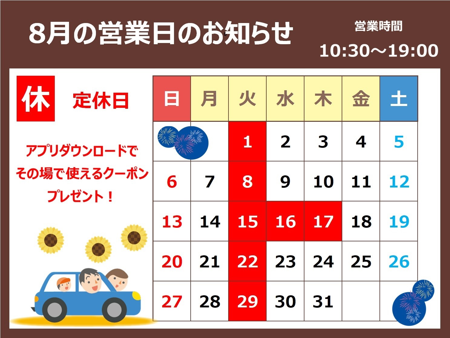 8月22日(火曜日)は定休日となります。