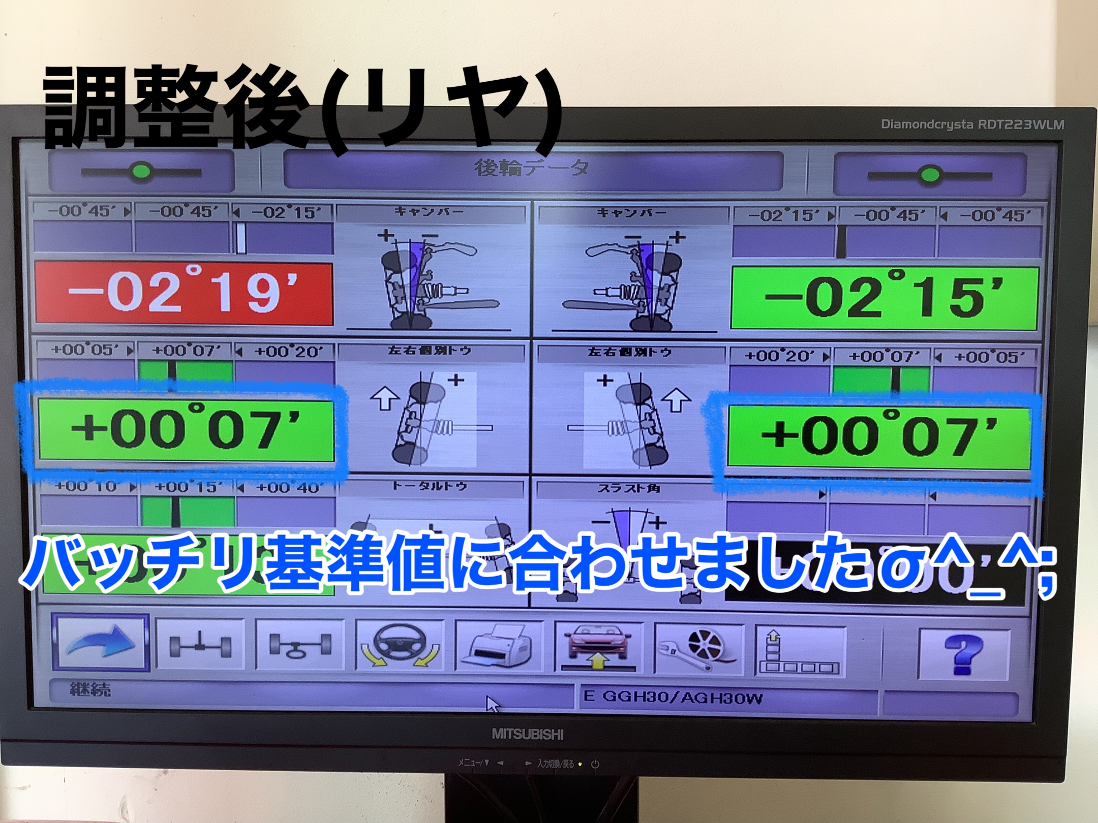 TOYOTA 30系 VELLFIRE(ヴェルファイア)のアライメント調整をしました!