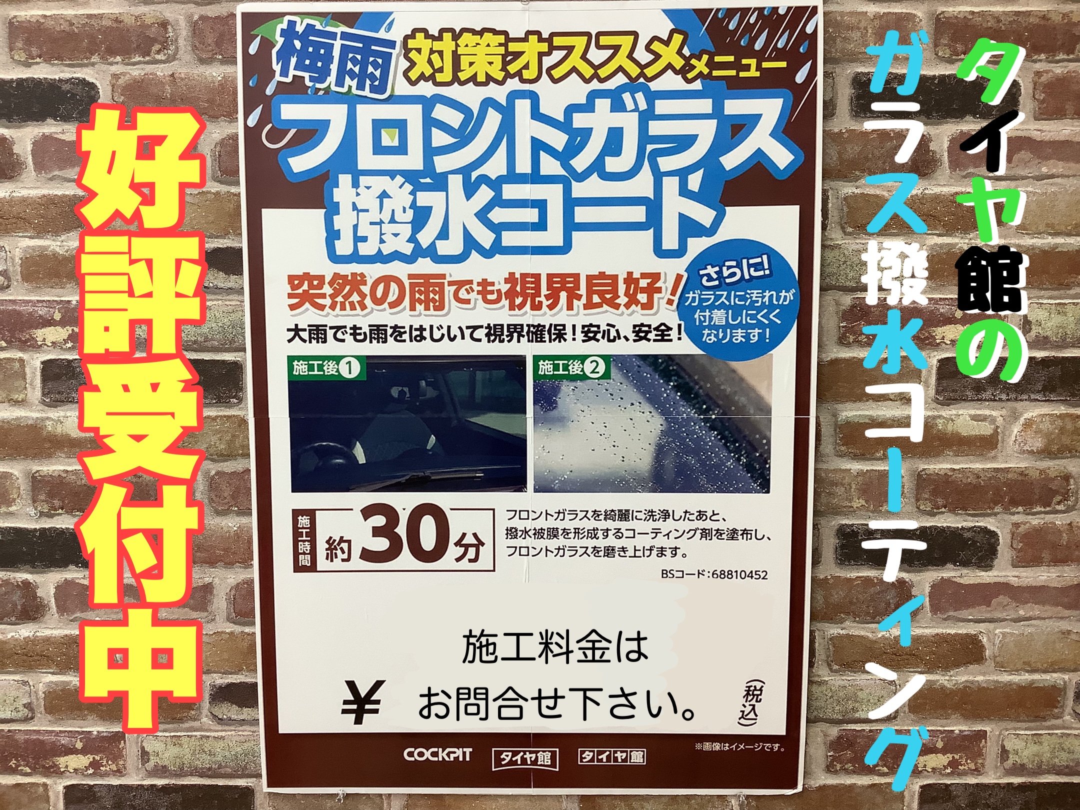 【タイヤ館 白河】フロントガラス撥水コーティングやってます!