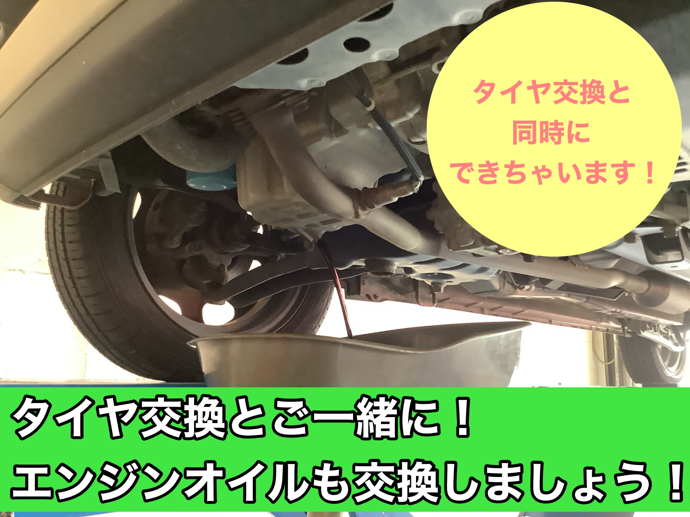 タイヤ交換の際、エンジンオイルの交換も同時にできちゃうんです!