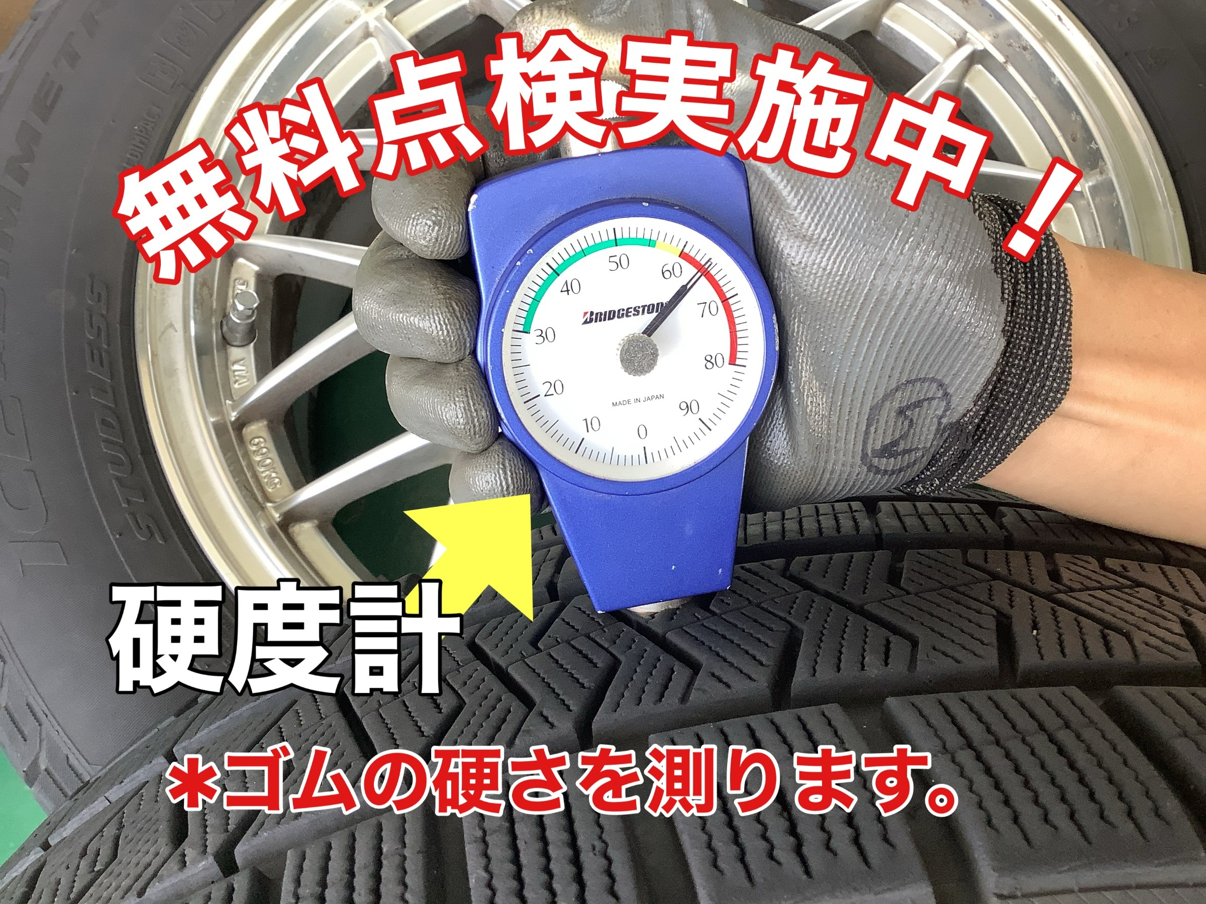 当店では、ゴムの硬さを測りタイヤ交換の必要性をご案内してます。