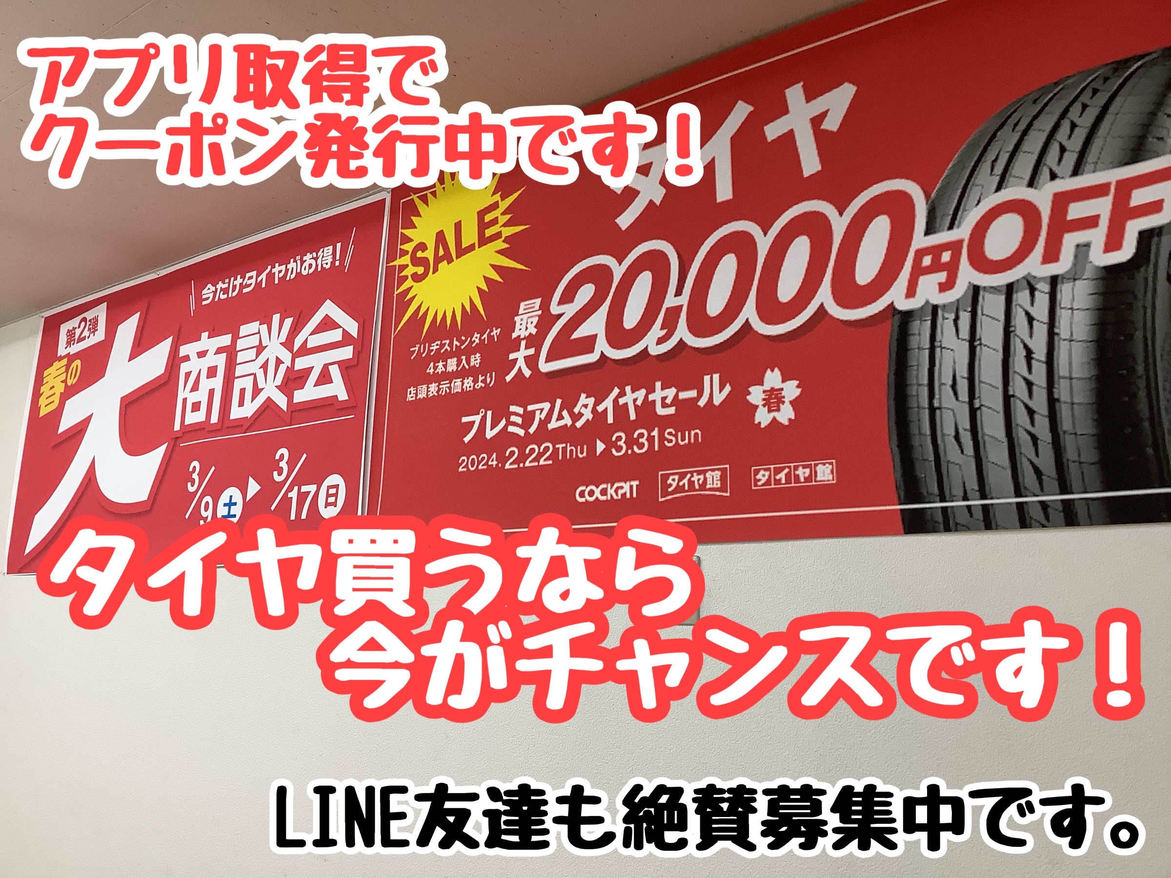 今、タイヤ館アプリにお得なクーポン発行中です!