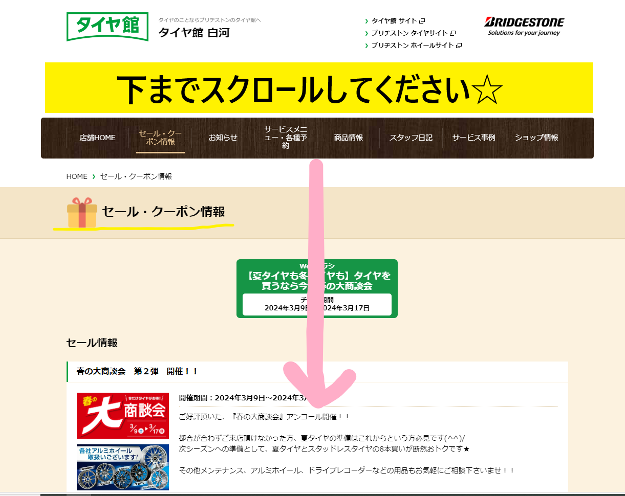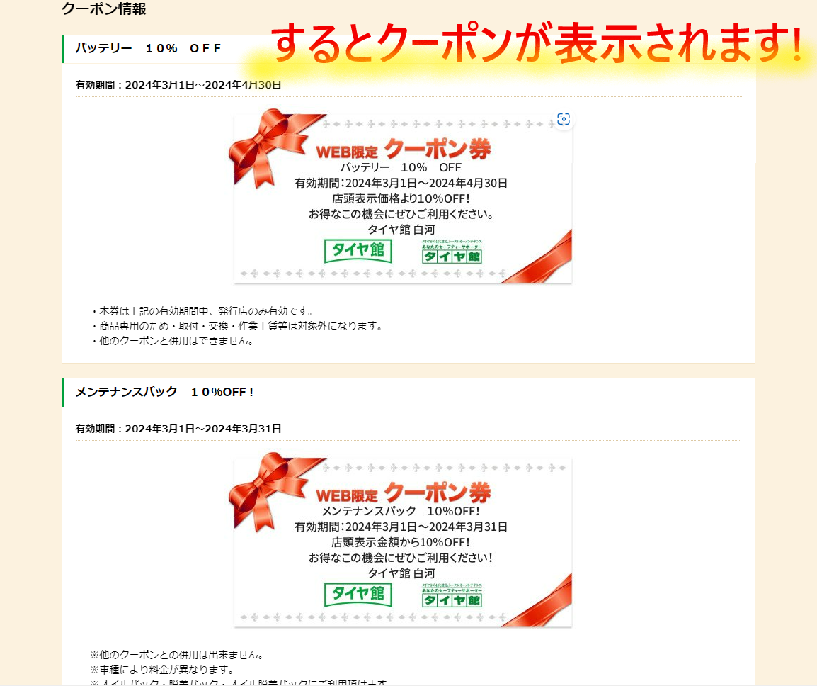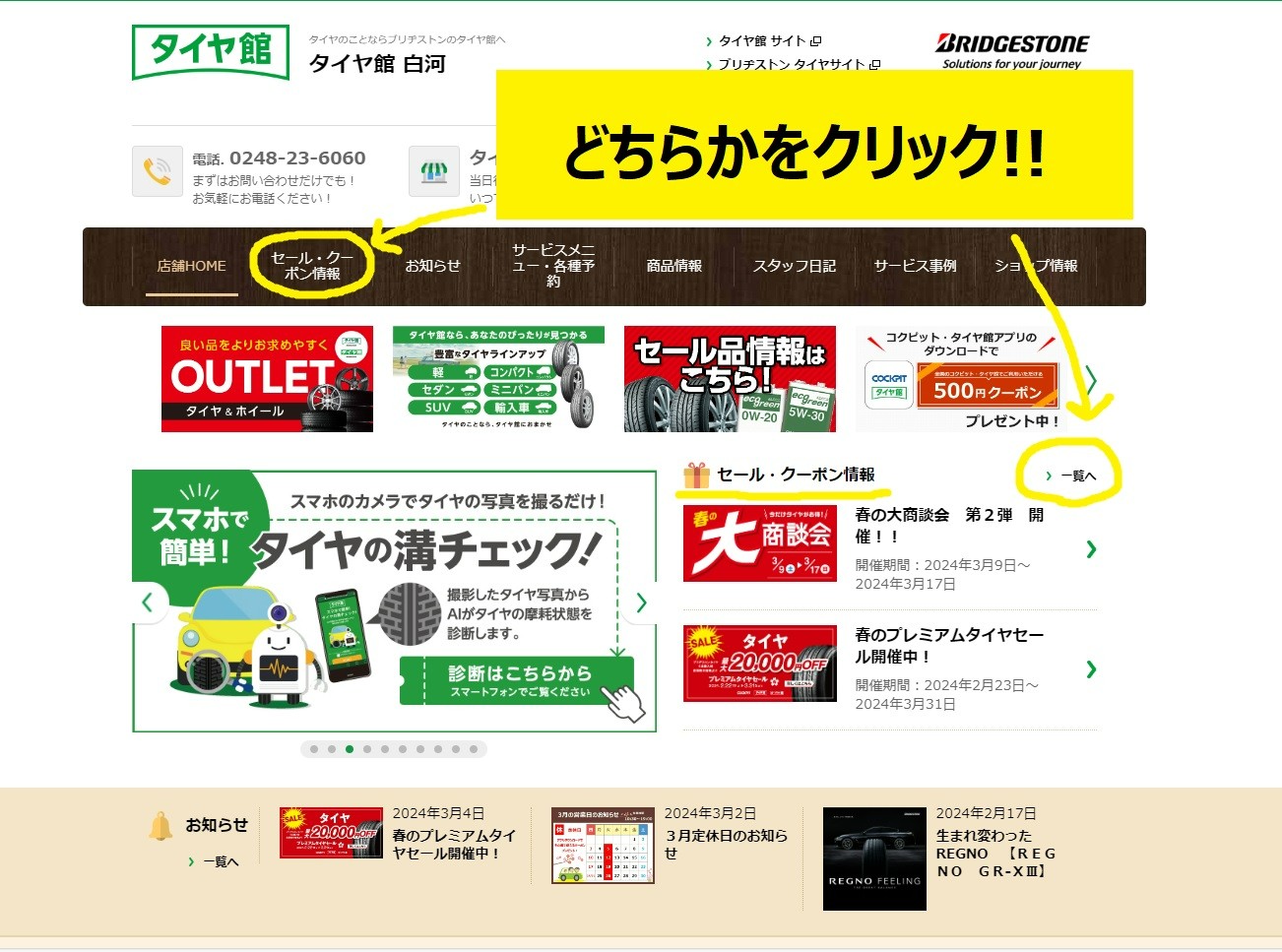 只今、タイヤ館白河限定!3月31日まで利用できるお得なクーポンを掲載中です!