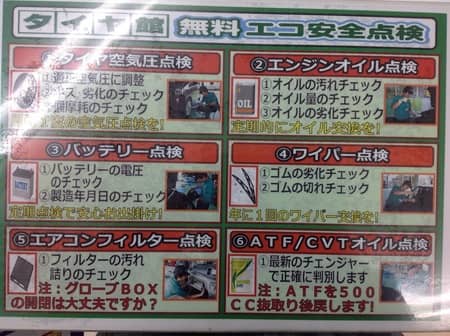 日頃からの点検が大事ですよ。タイヤ館はいつでも点検無料でやってます!