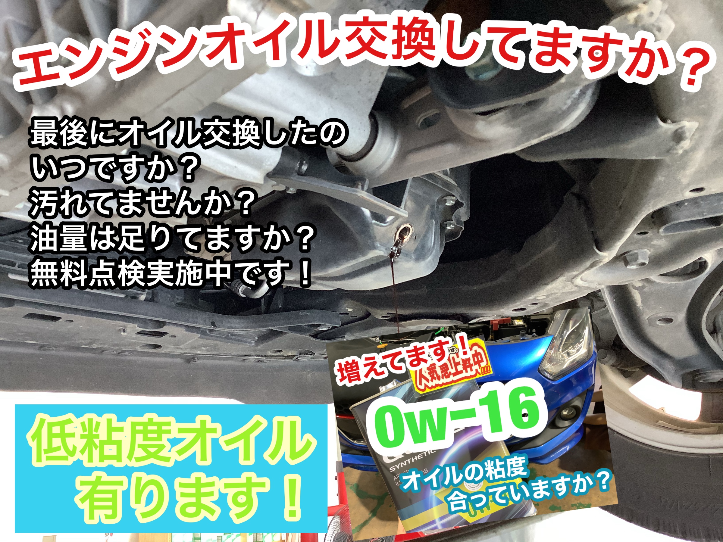 燃費の為にも、お車の為にも、指定粘度での交換がオススメです!