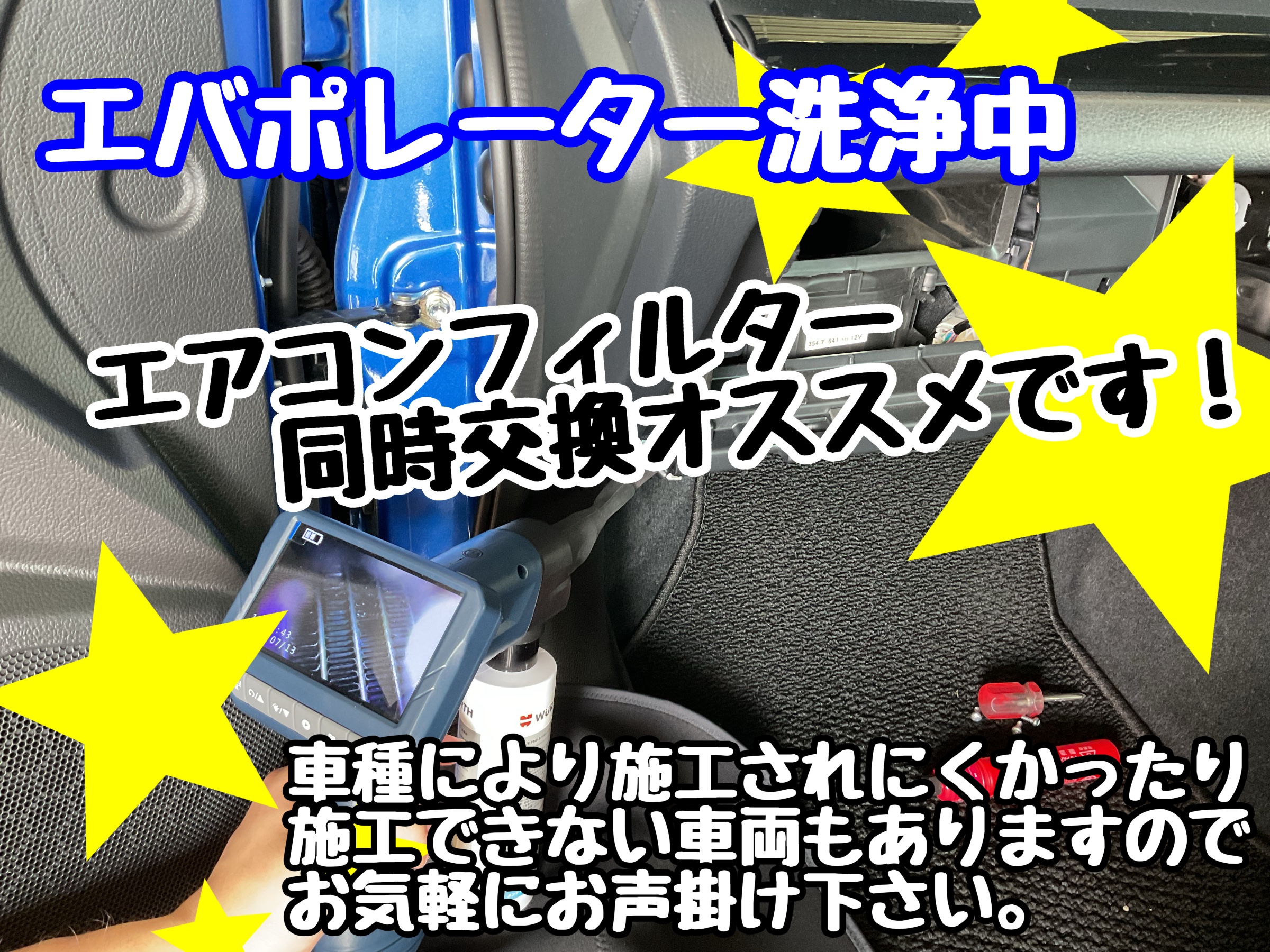【 タイヤ館 白河 】バッテリー点検・エバポレーター洗浄