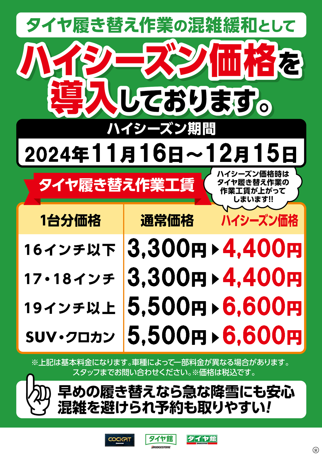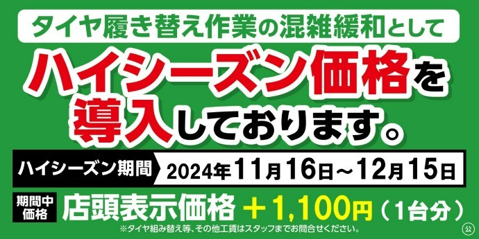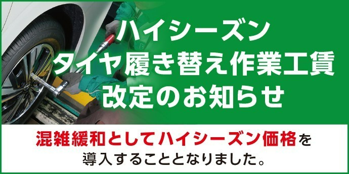 タイヤ履き替え工賃及び、ハイシーズン価格導入