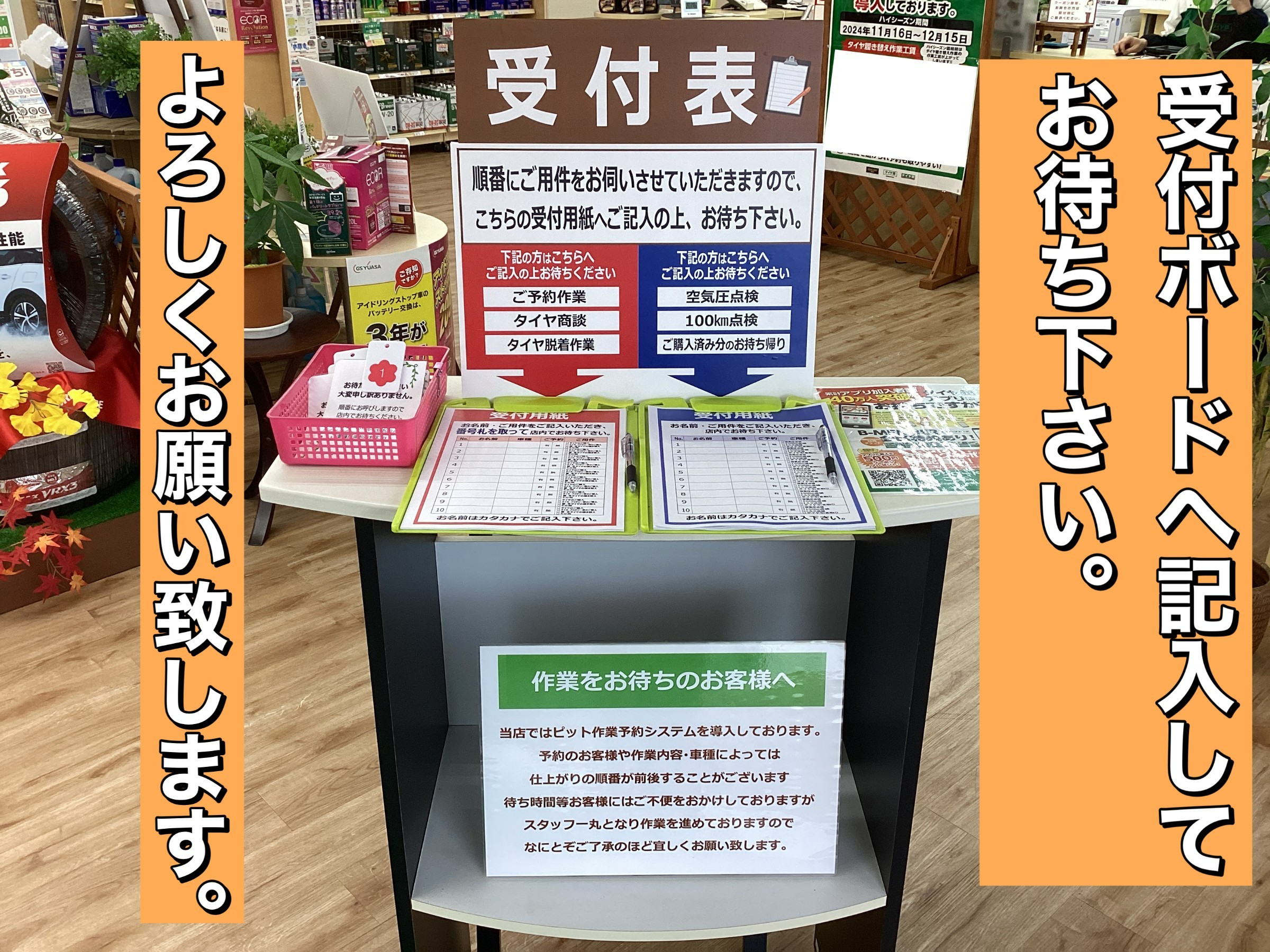 予約なしで直接ご来店されるお客様は『受付ボード』への記入お願い致します。