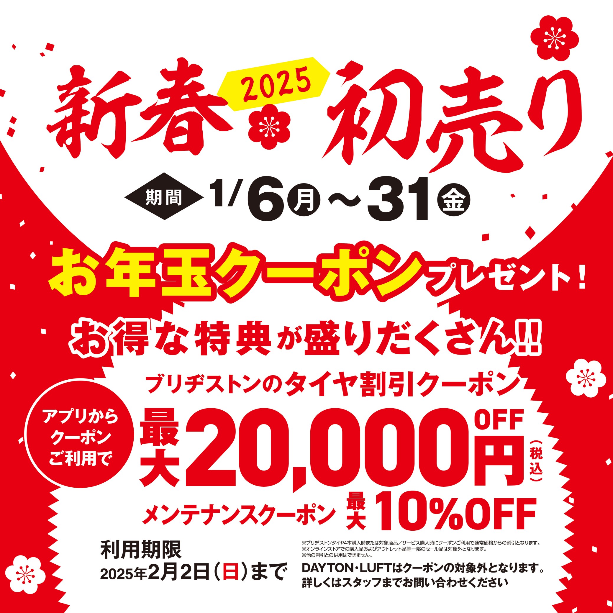 【タイヤ館 白河】明日火曜日はお休みとなります ポスト 2025年1月6日 タイヤ館白河ホームページを ご覧いただきありがとうございます。 さて、明日1/7(火)は定休日と なっております。 ご迷惑お掛けしますが、 宜しくお願い致します。 また、本日より『新春!初売り』を開催中です! タイヤ館アプリにお年玉クーポンも配信中! また、指定エンジンオイルが工賃込みで ¥2,025!(限定5台) ぜひこのお得な期間にご利用下さい。 皆様のご来店お待ちしております。 タイヤ館 白河 住所:961-0985福島県白河市和尚壇6-17 電話番号: 0248-23-6060 カテゴリ:お知らせ