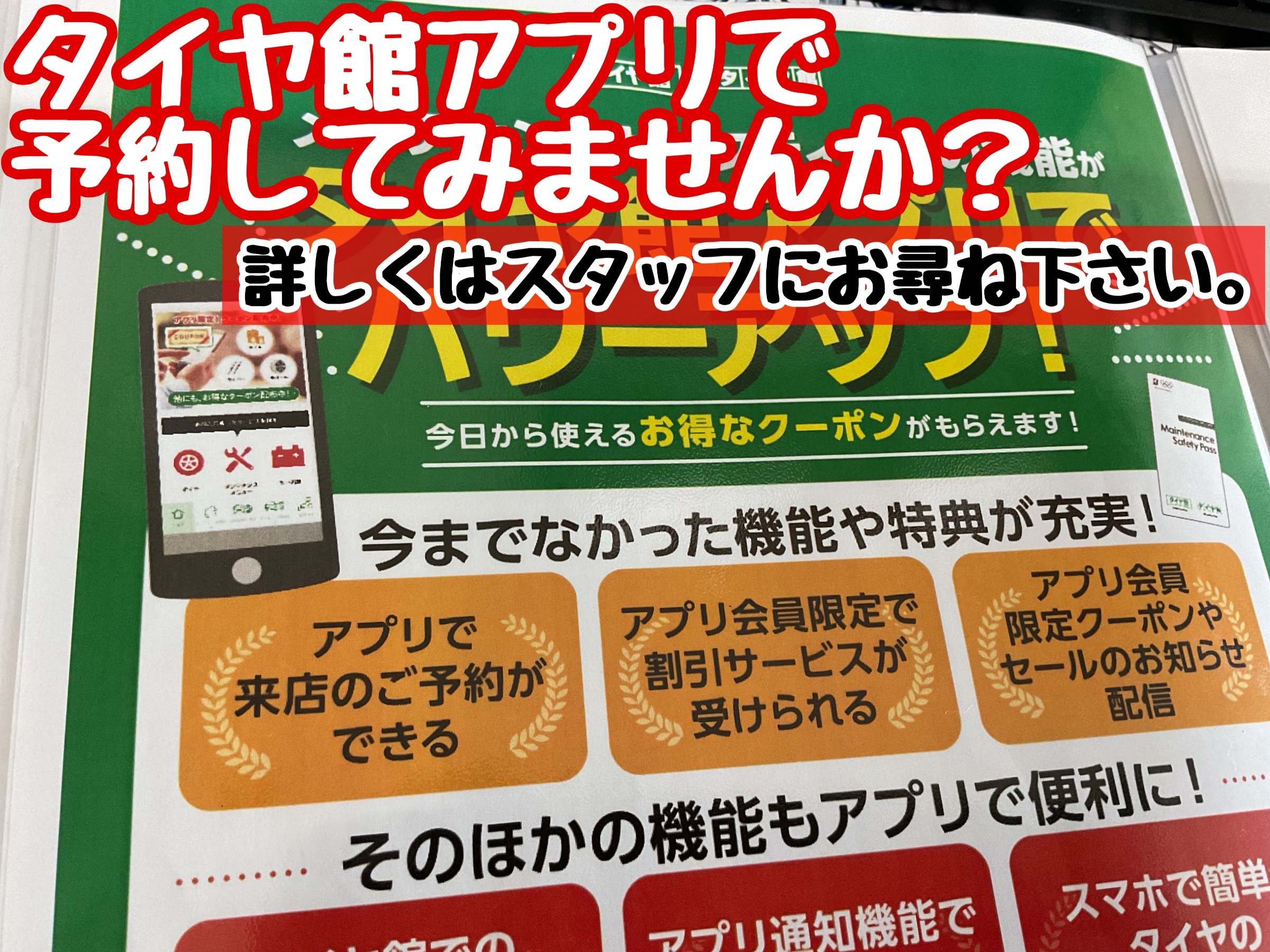 持っていて損はない!『 タイヤ館アプリ 』インストールおすすめです!