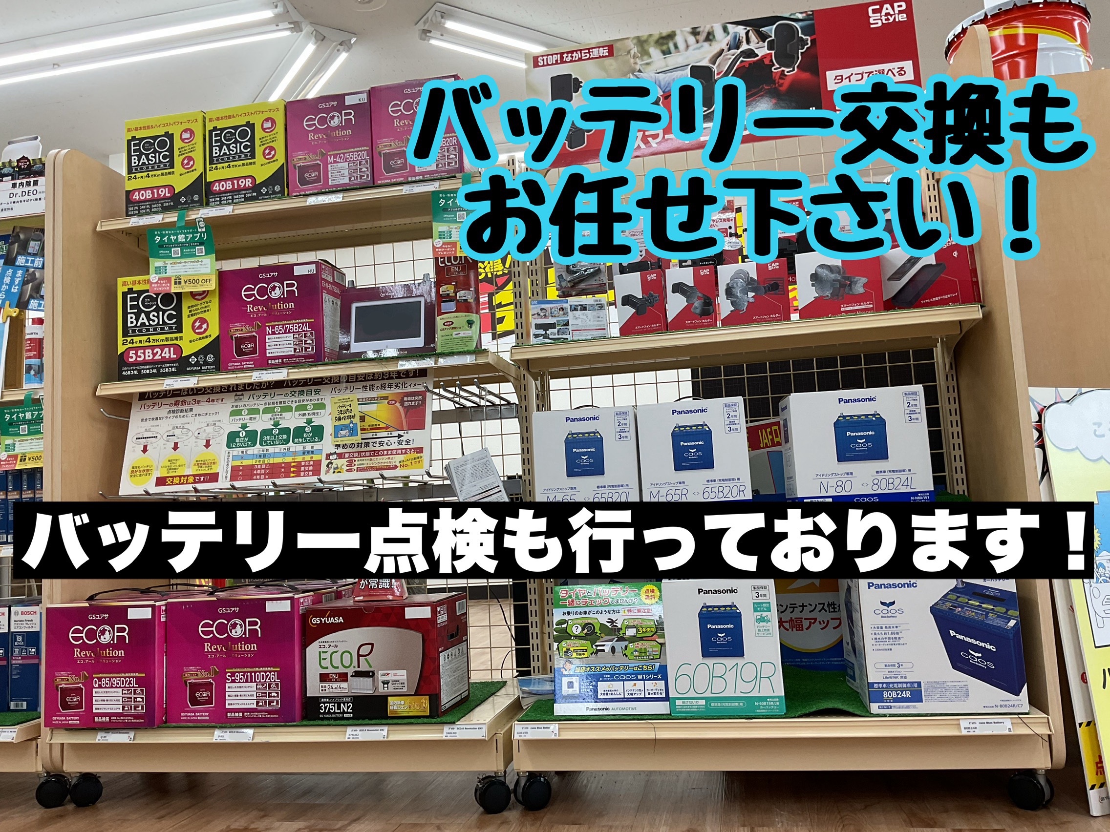 お車のバッテリーもタイヤ館にあります!