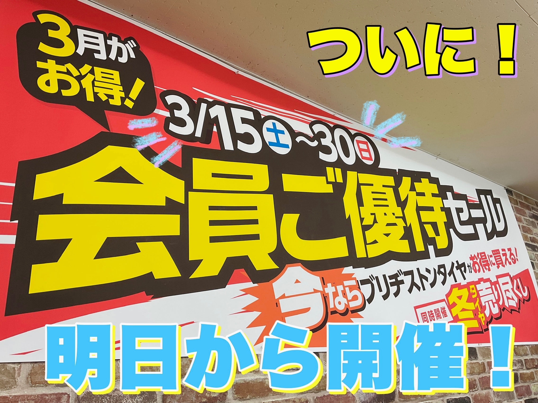 【タイヤ館 白河】ついに明日から!とってもお得なセール開催! ポスト 2025年3月14日 タイヤ館白河ホームページを ご覧いただきありがとうございます。 【 ~ セールのご案内 ~ 】 とってもお得にタイヤが買える、『 ご優待セール 』が ついに明日から開催されます! 会員と書いてありますが、 もちろん!ご新規様も大歓迎です! 3月15日~3月30日までの期間限定価格でご案内! さらに!期間中タイヤ同時購入でアライメント作業もお得に! ぜひこの期間に相談してみませんか? 皆様のご来店お待ちしております。 タイヤ館 白河 住所:961-0985福島県白河市和尚壇6-17 電話番号: 0248-23-6060
