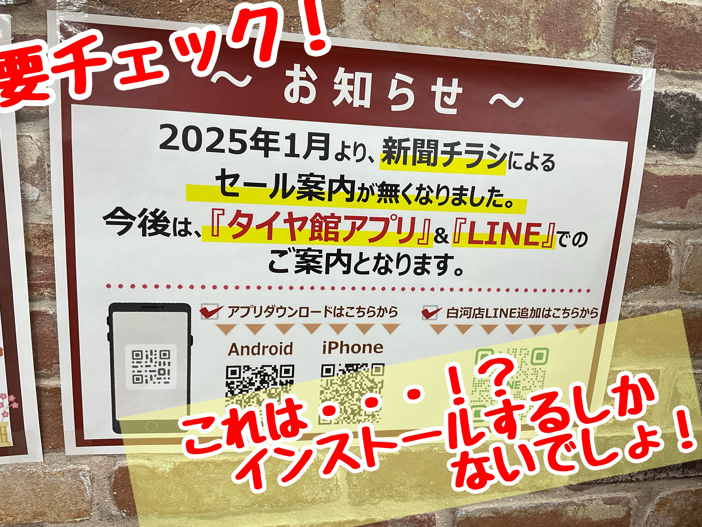 【 タイヤ館 白河 】アプリインストールお済みですか?