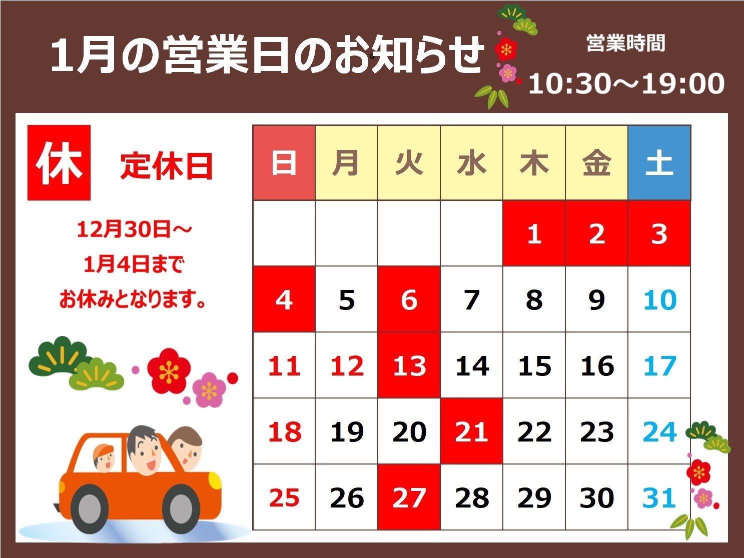 年末年始の営業案内です。