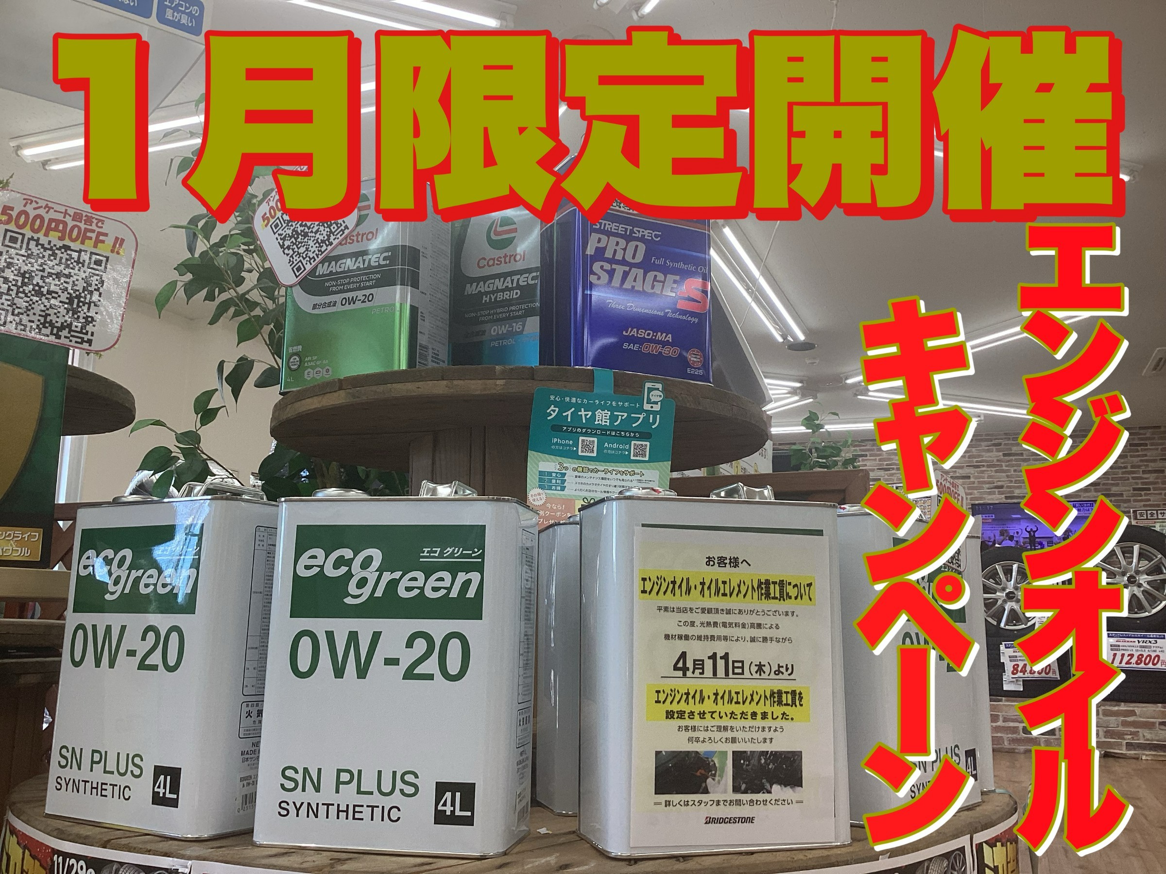タイヤ館白河、26年度1月のイベントはエンジンオイルキャンペーン