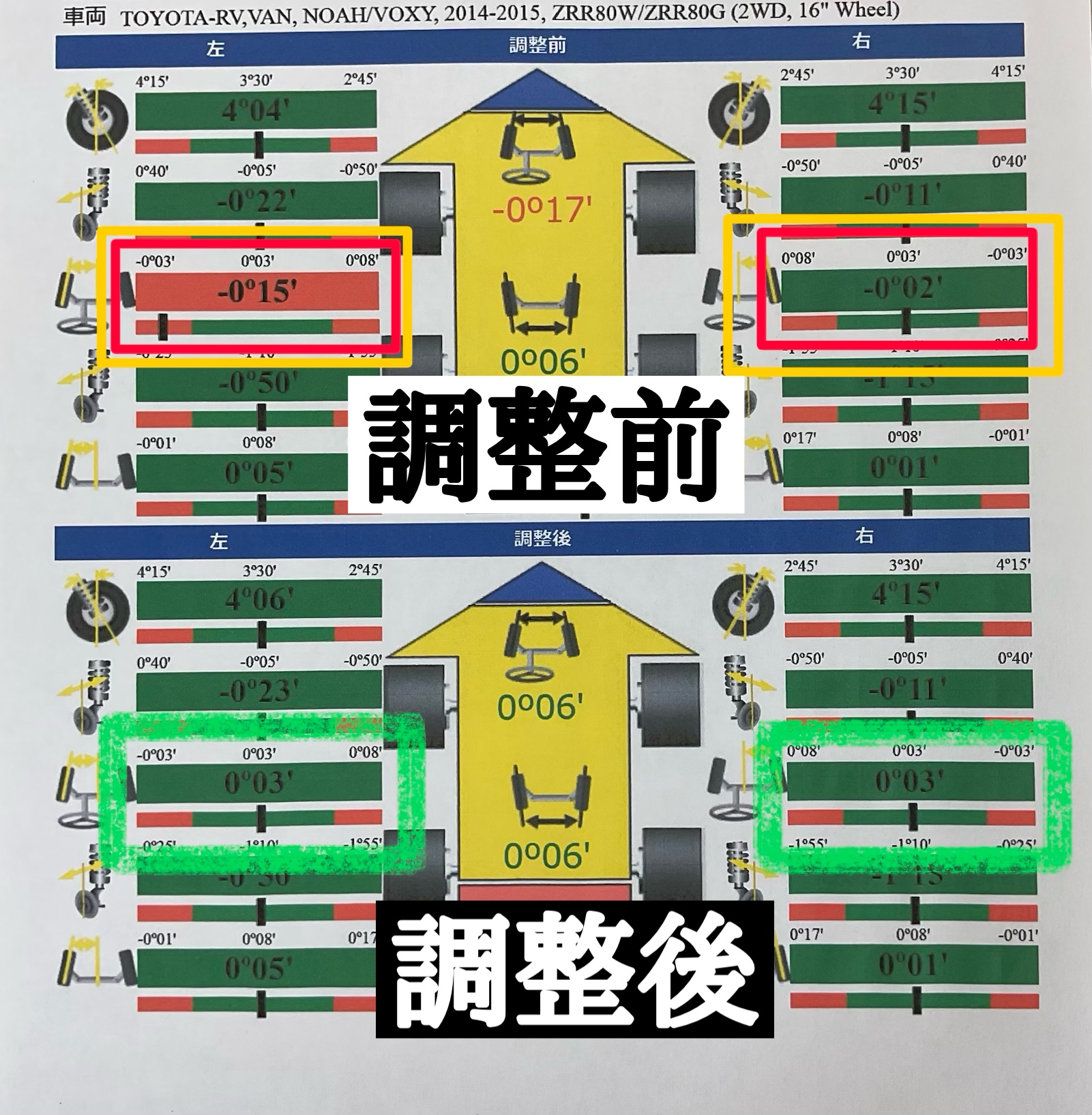 トヨタ ノア アライメント調整しました