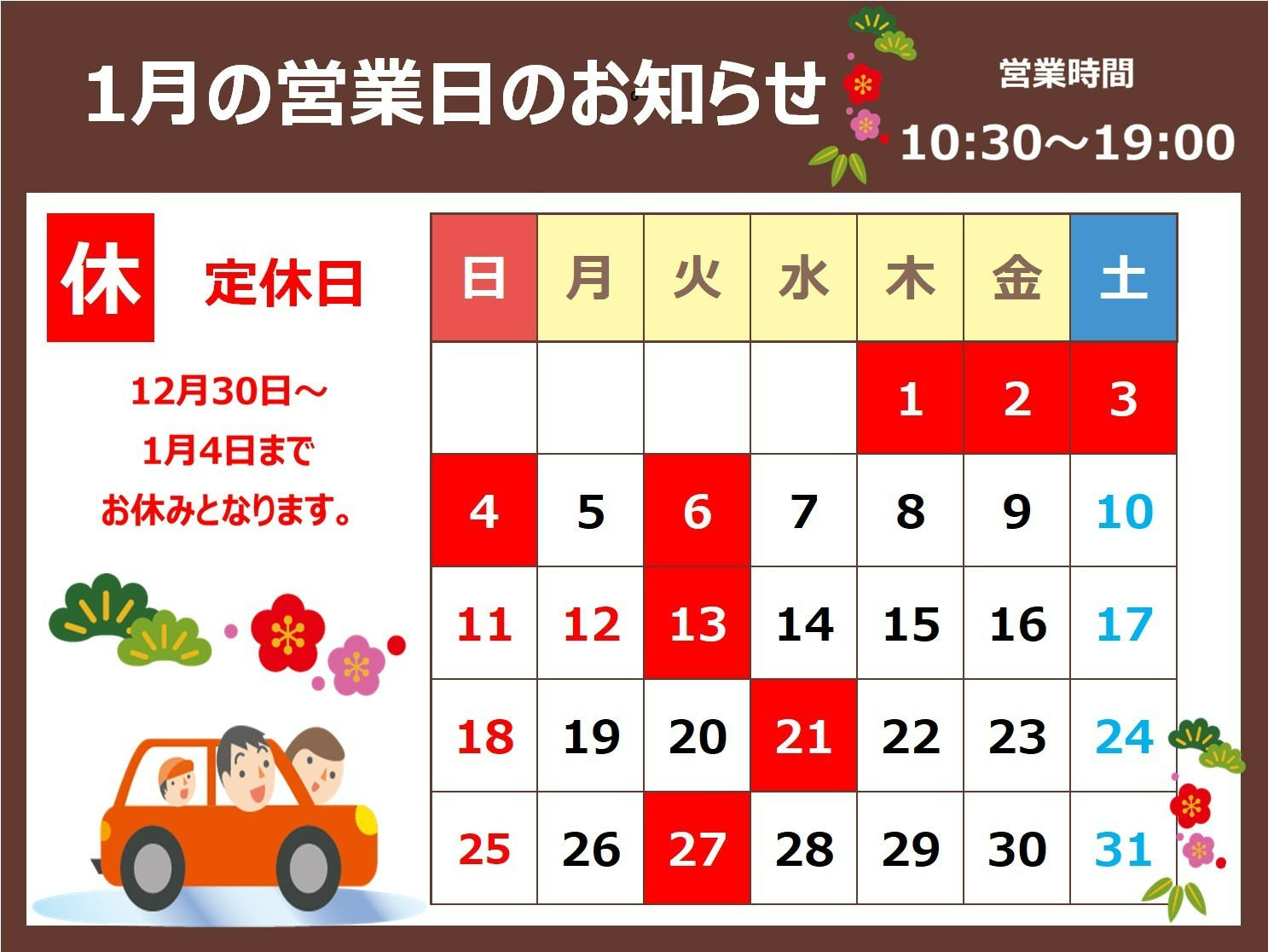 ☆臨時営業日、振替休日のご案内☆