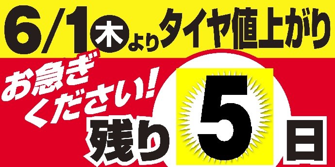 タイヤの値上がりまで残り5日です!
