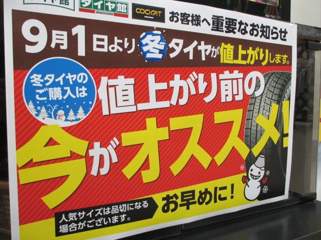 今日のオススメは、値上げ前のスタッドレスタイヤ!