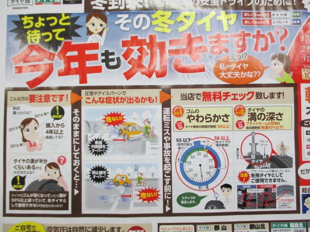 特にご自宅で交換された方はぜひタイヤ点検(無料)だけでもお越し下さい。
