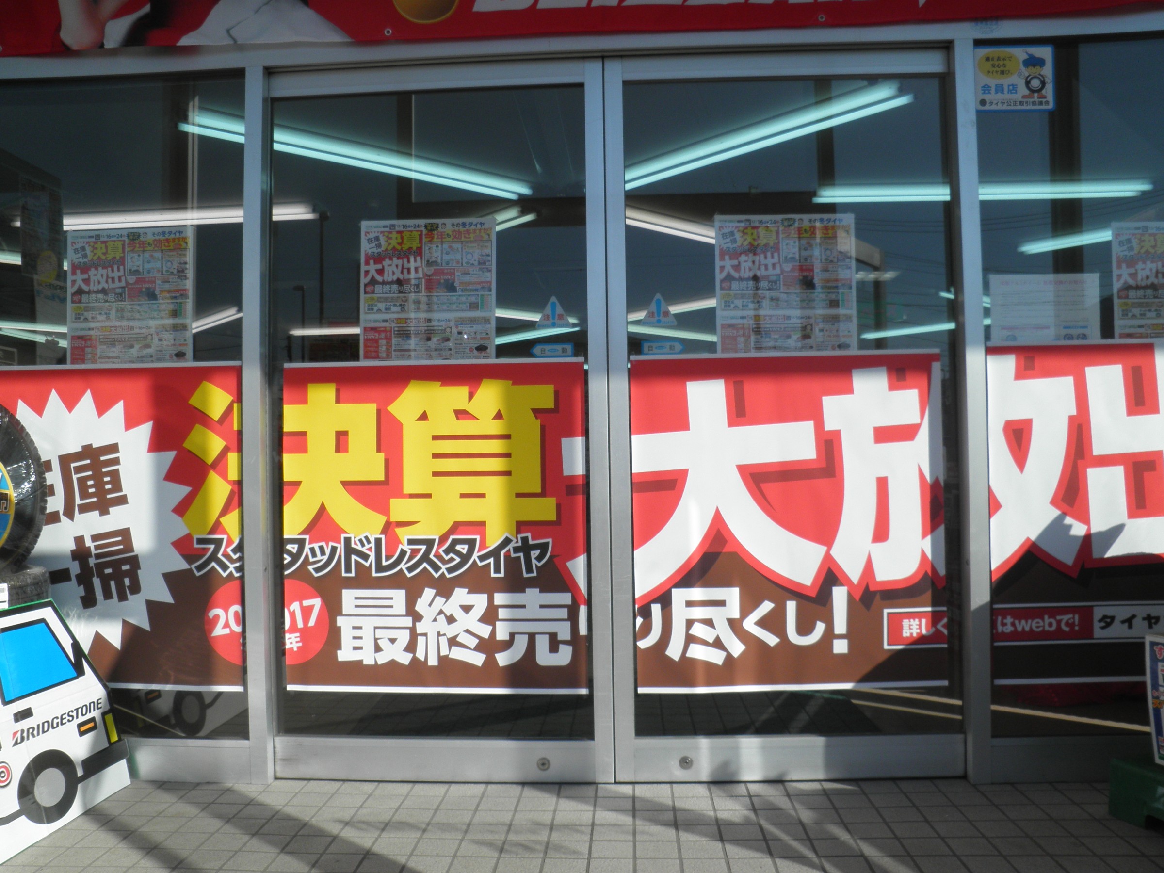 只今、タイヤ館では決算セールを開催致しております。