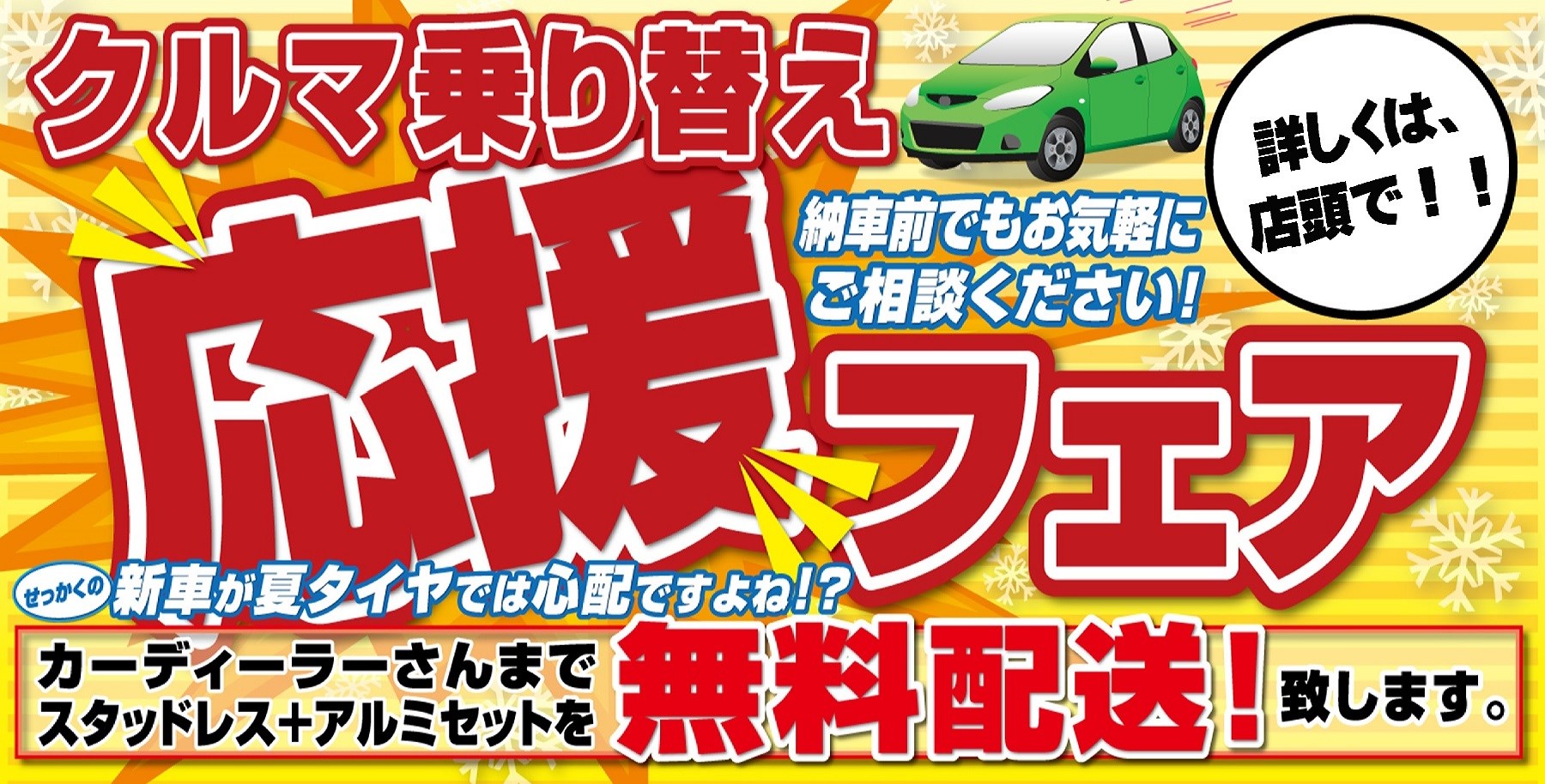 当店購入のタイヤホイールを納車前に無料配達いたします。