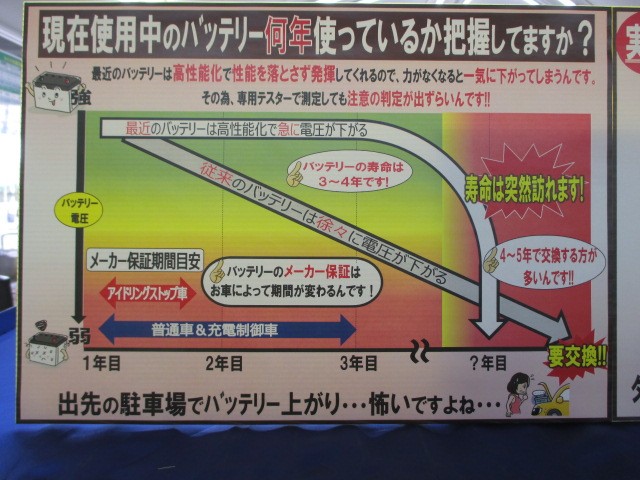 寿命が突然訪れます!出先でのバッテリー上がりは困りますよね、、、。