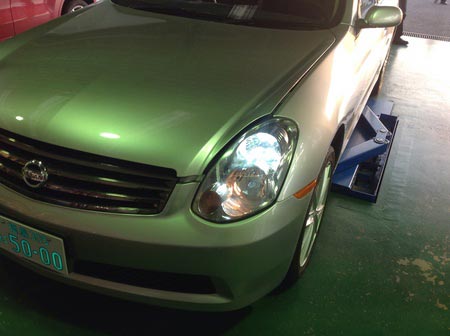 スカイラインV35 ヘッドライトバルブ交換!