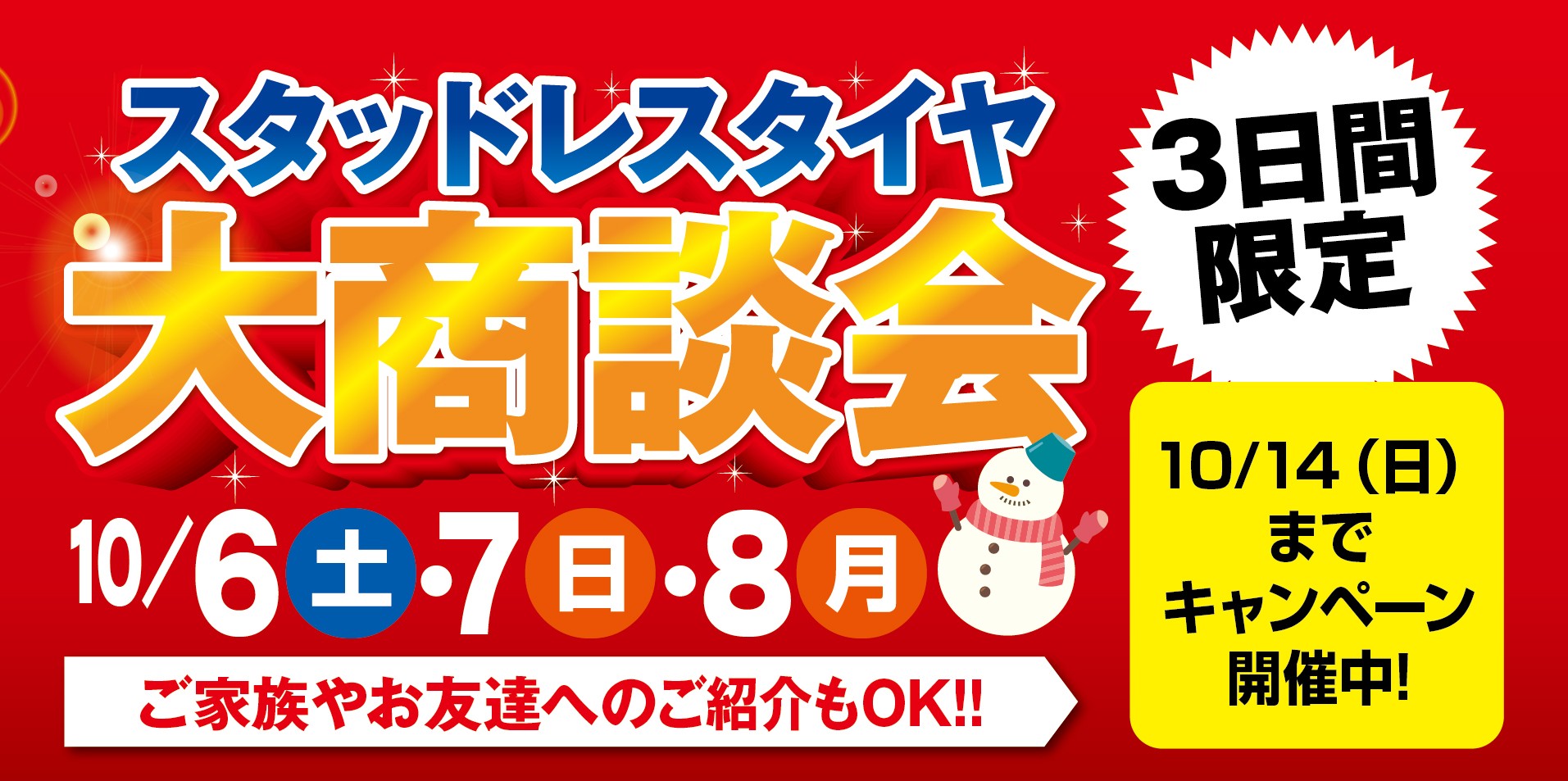 毎年恒例となりました冬のスタッドレス大商談会が