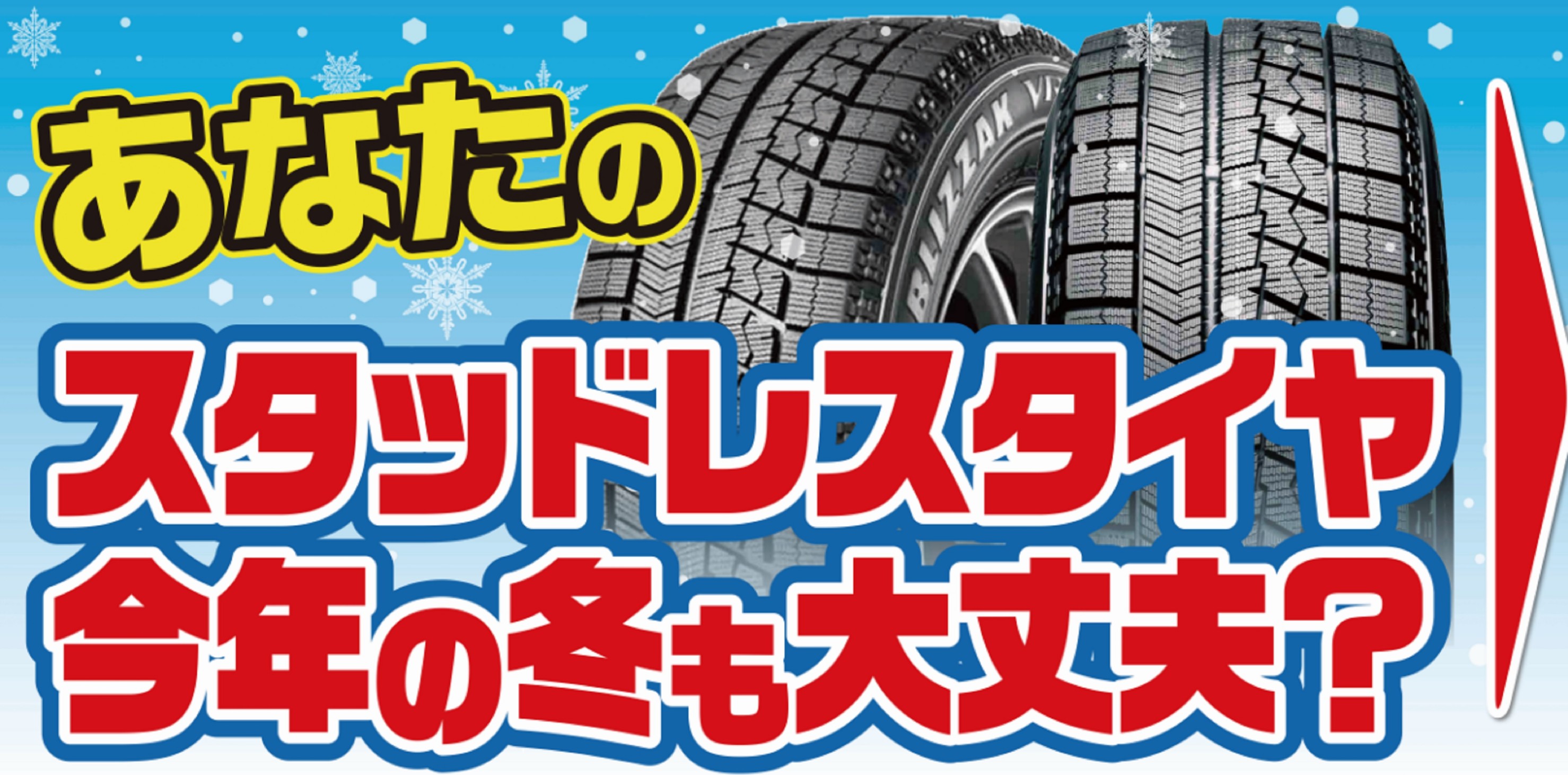 装着スタッドレスの効きは大丈夫ですか? ポスト 2018年12月14日 みなさんこんにちは タイヤ館白河です。 現在履かれているスタッドレスの 残ミゾやゴムの硬さは大丈夫ですか? 冬も本番に入りいつ路面が凍結するか わかりません。 もし冬タイヤに交換する際に 点検していない場合には 早めの点検をオススメします。 タイヤ館ではスタッドレスタイヤの残ミゾや ゴムの硬度など無料で点検しておりますので 点検をご希望のお客様はお気軽にタイヤ館へ ご来店ください。 担当:さとう
