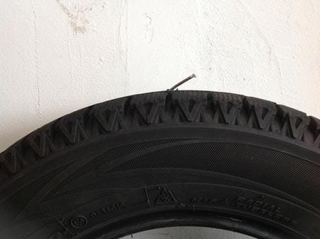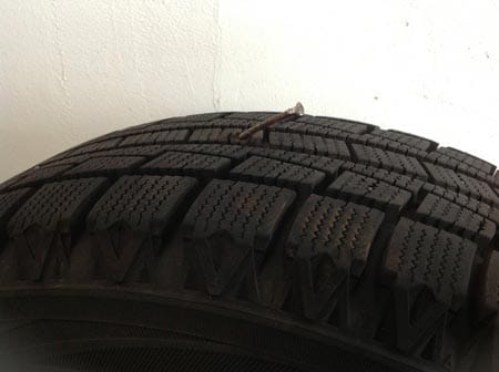 しかしこのようなクギがタイヤに刺さるって