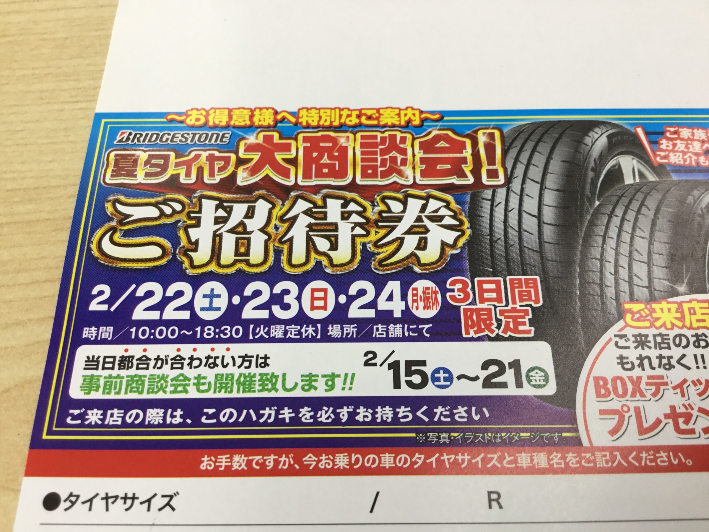 ※ご招待券のハガキは当店のお得意様へできる限り郵送させていただいてます。(只今発送準備中)