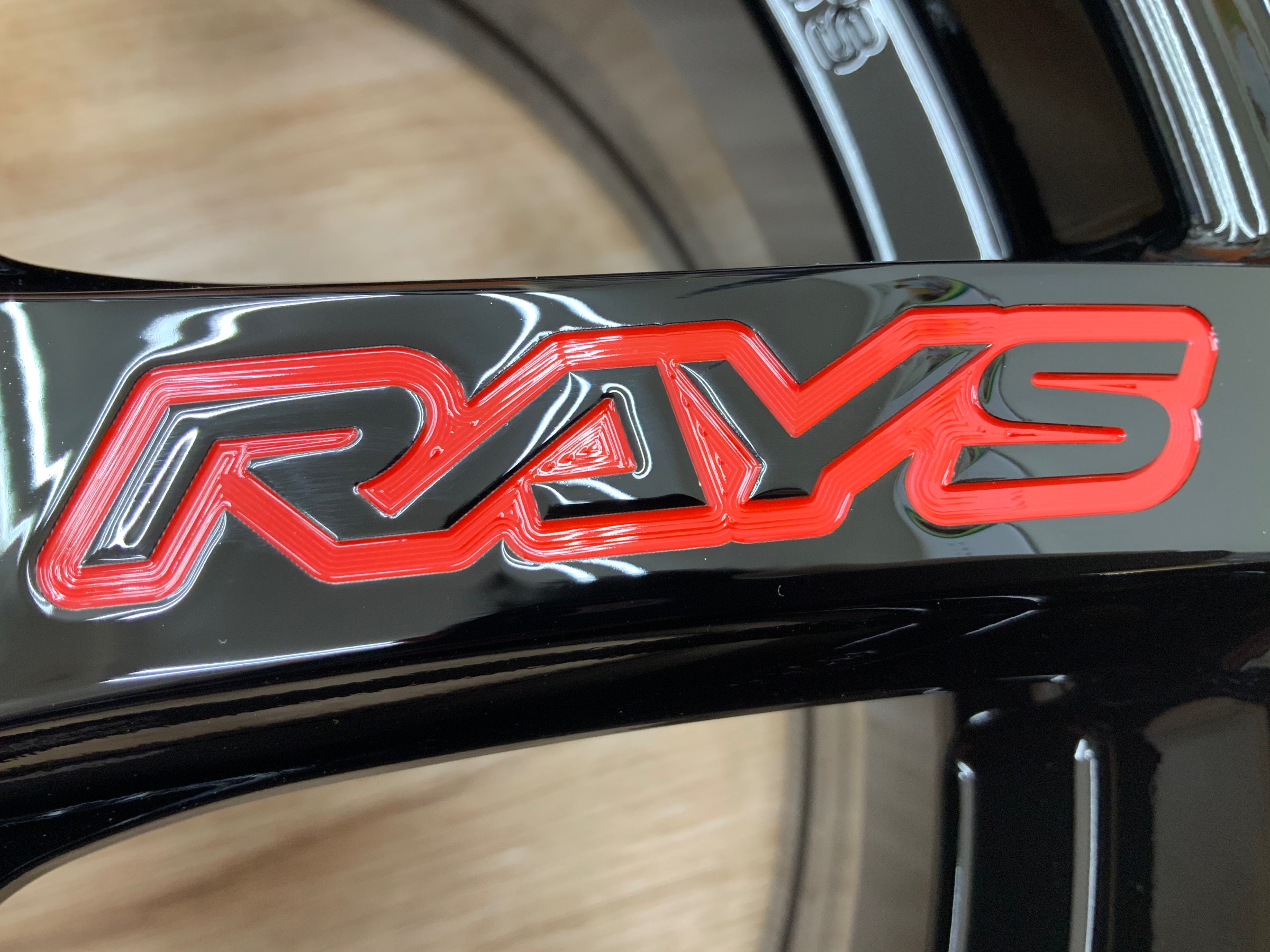 そしてリムエッジにはダイヤカット、スポークのRAYSロゴにはマシニングが施されステキすぎ!!