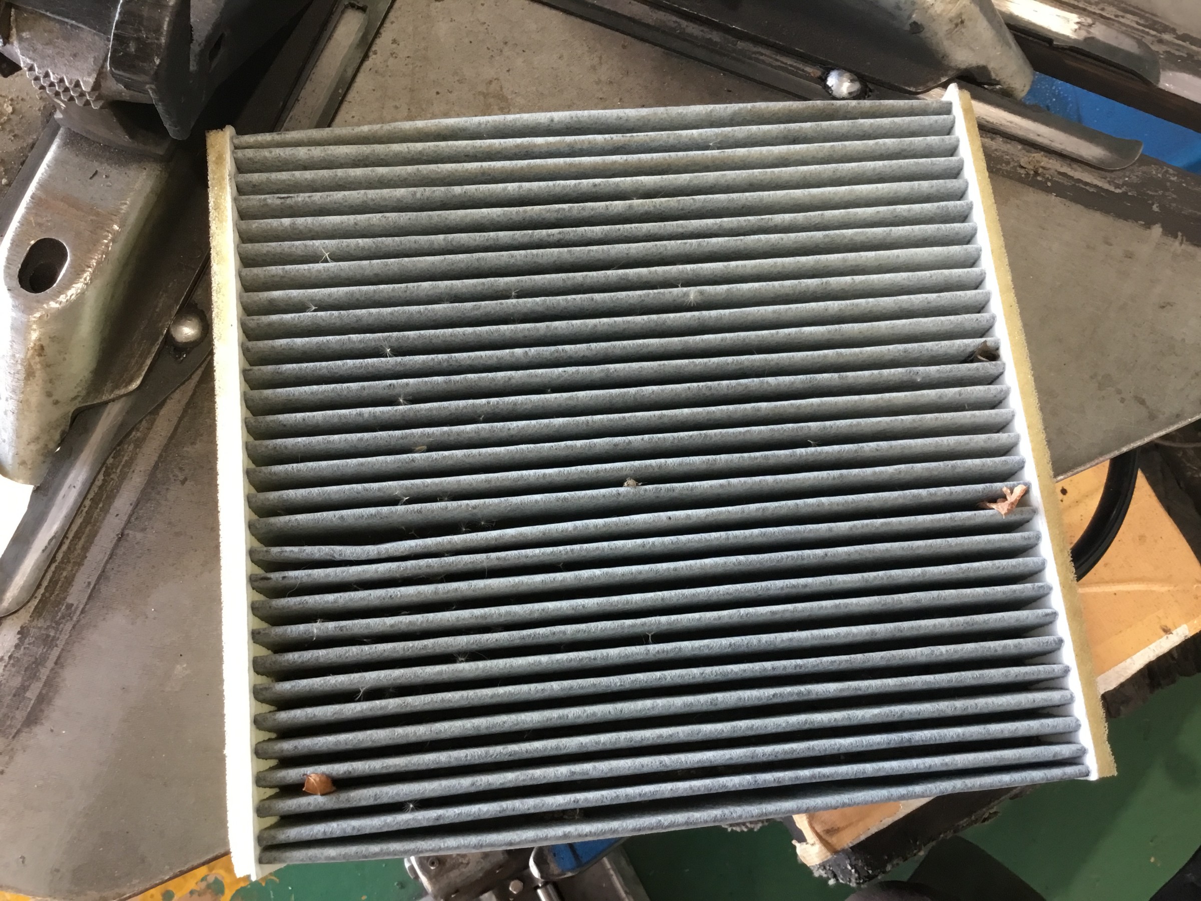本日はタイヤの交換を行いましたが、点検でエアコンフィルターとオイルの汚れが見られたので、