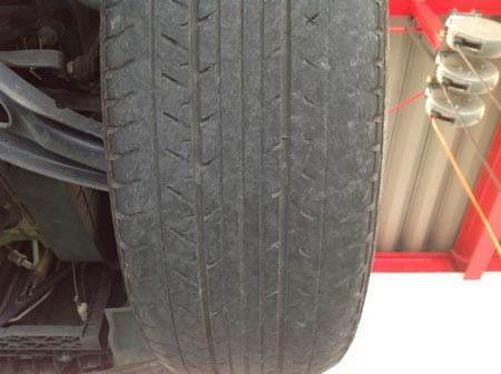 最近タイヤ点検でよく偏摩耗(タイヤの片方だけ減っている)