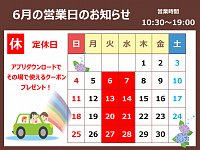 いつも当店をご利用いただきありがとうございます。 6月20日(火曜日)、21日(水曜日)は定休日となります。 ご不便をおかけすると思いますがご理解の程よろしくお願い致します。 タイヤ交換やエンジンオイルの交換など随時受付けております。 是非お気軽にお問合せください。 こちらからもご予約出来...